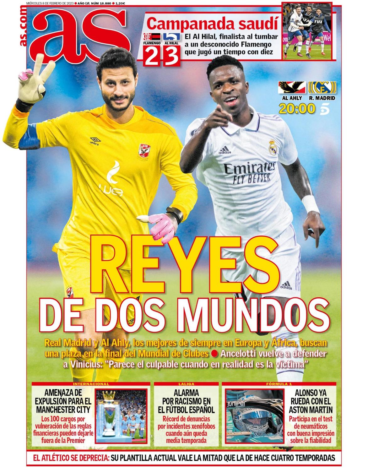 في حين تصدر محمد الشناوي نجم وقائد الأهلي، بجانب فينيسيوس جونيور نجم ريال مدريد، غلاف صحيفة "آس"، بعنوان: "ملوك العالم".
