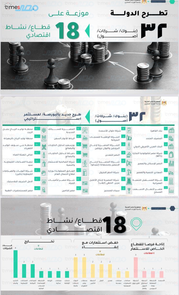 وأوضح رئيس الوزراء أن الـ 32 شركة التي سيتم طرحها، تشمل 18 قطاعا ونشاطا اقتصاديا، وتضم 3 بنوك هي: بنك القاهرة، والمصرف المتحد، والبنك العربي الأفريقي الدولي، لافتا إلى أن ذلك تم بالتنسيق الكامل مع البنك المركزي المصري.
