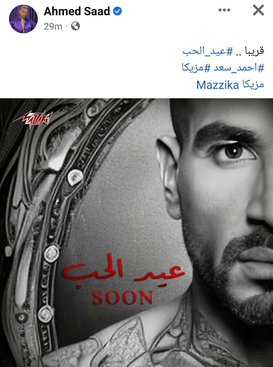 روج الفنان أحمد سعد لأحدث أغنية والتي تحمل إسم"عيد الحب" يتم طرحها يوم 14 من شهر فبراير الحالي بالتزامن مع احتفالات عيد الحب 2023.