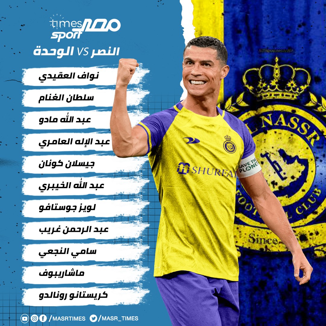 أعلن المديرالفنى لنادى النصر التشكيل الذي سيخوض به مواجهة الوحدة فى دوري روشن السعودي :