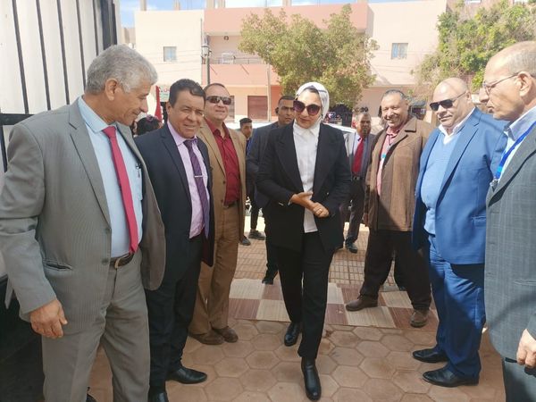 حيث تفقدت مشروعات الطلاب المشاركين بالمعرض البالغ عددها ٣٥ مشروعًا قدمها ٥٢ طالب من مركزي الداخلة وبلاط.