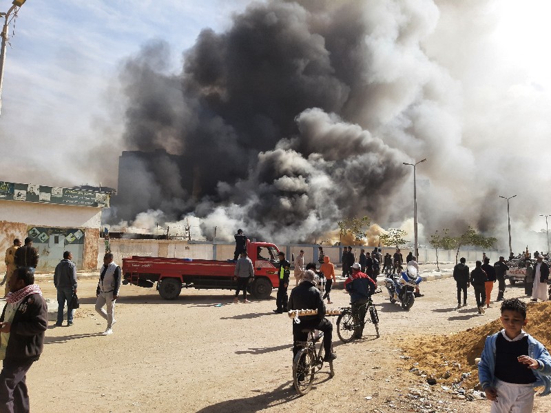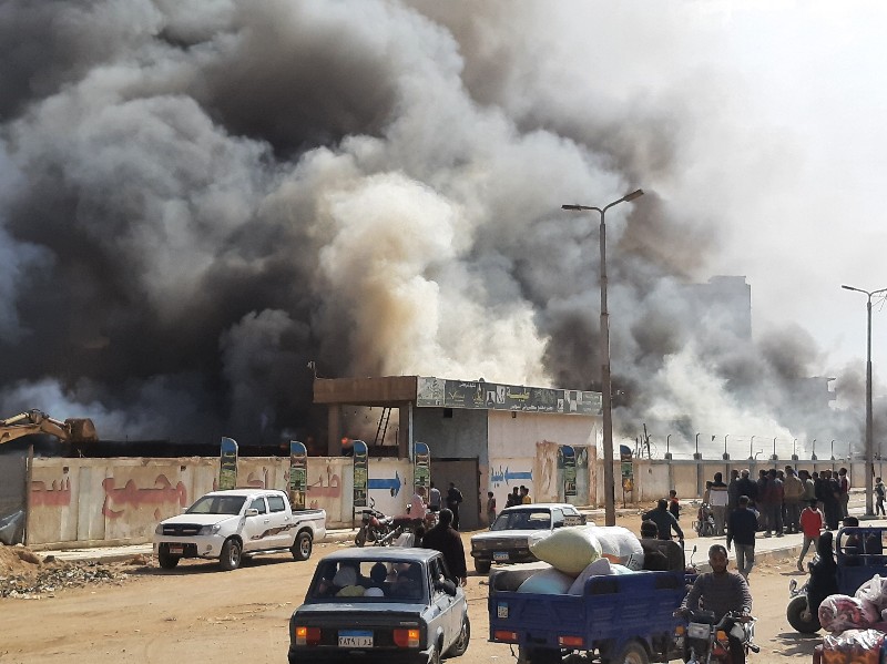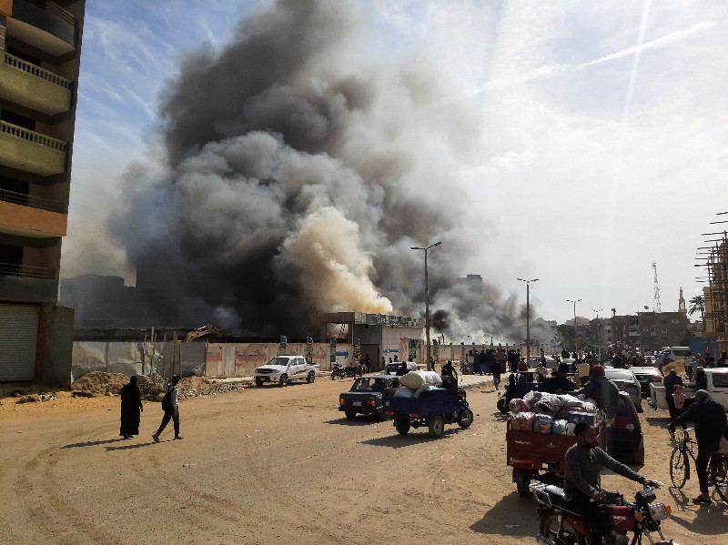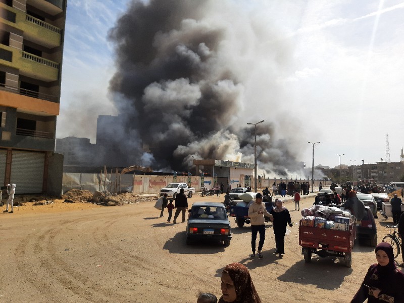 حريق هائل يلتهم مصنع ملابس في السويس (صور)