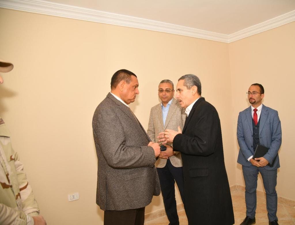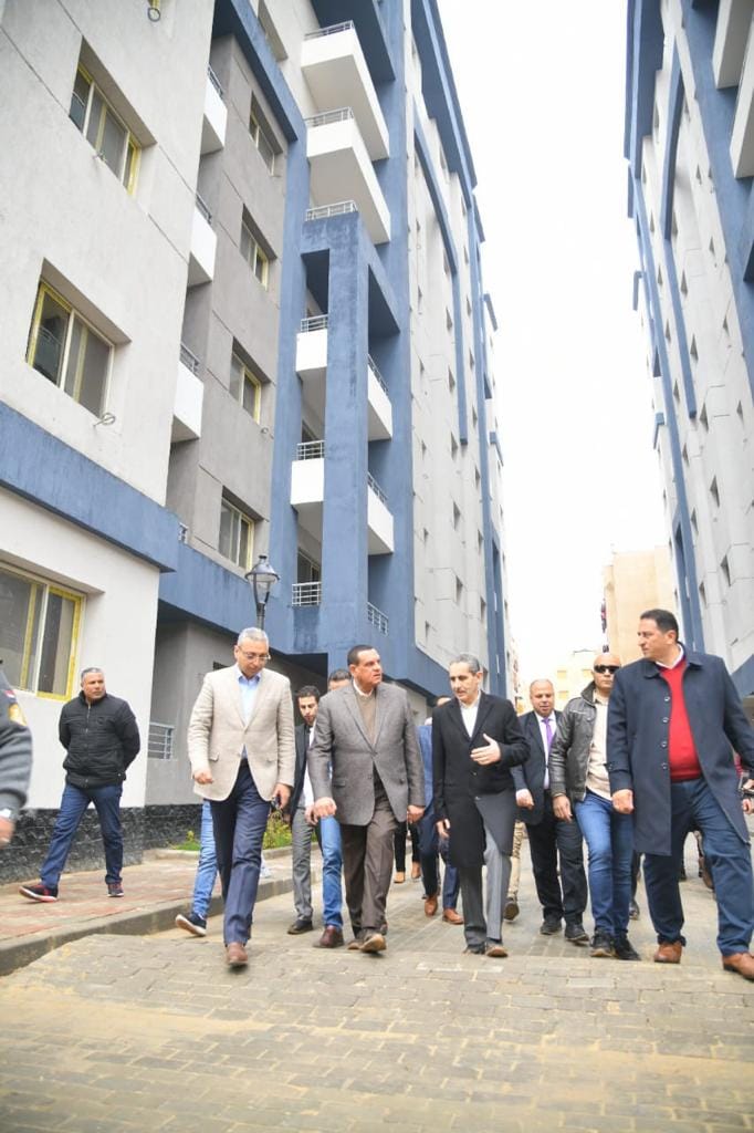 وتفقد الوزير والمحافظ عدد من الشقق السكنية والبالغ عددها 480 وحدة سكنية داخل 6 عمارات مقامة على مساحة 2,3 فدان، وتتكون كل عمارة منهم من (دور أرضي و 9 أدوار علوية).