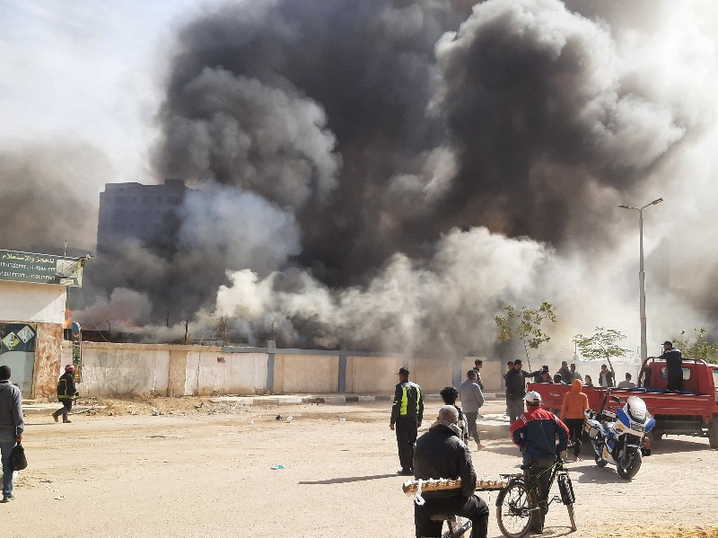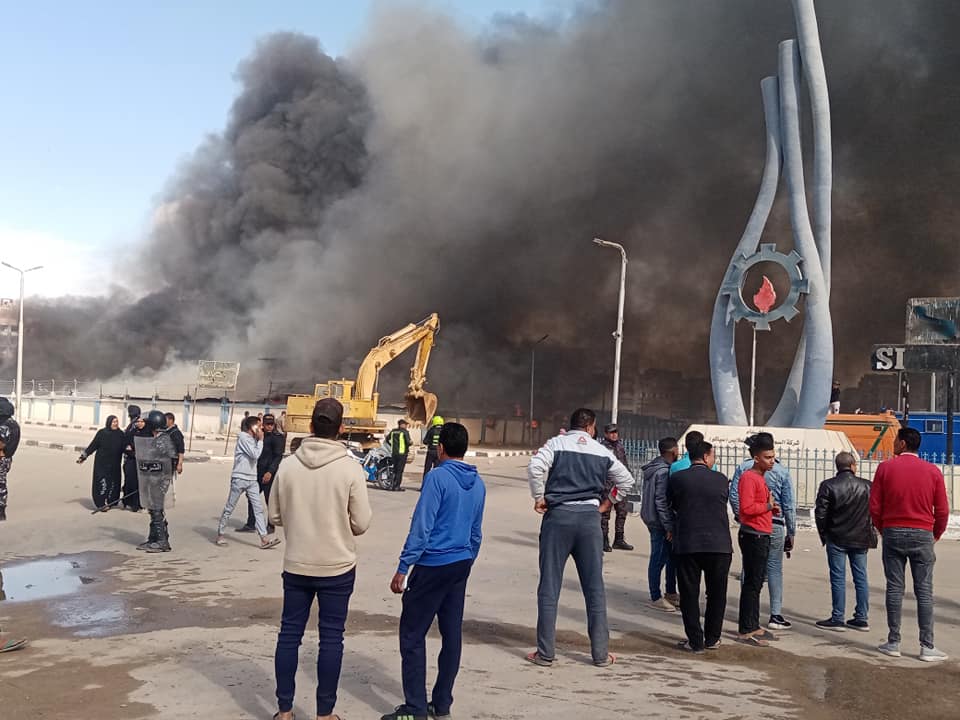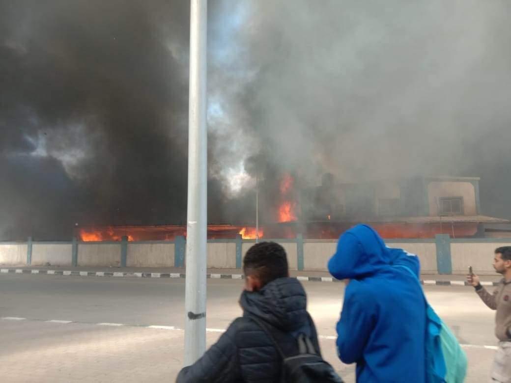 وكان حريق نشب بمصنع بلازا للملابس الجاهزة بمنطقة حي الكويت، وتصاعدت ألسنة اللهب من مخزن القماش الهالك من داخل المصنع، وغطت الأدخنة سماء المنطقة.