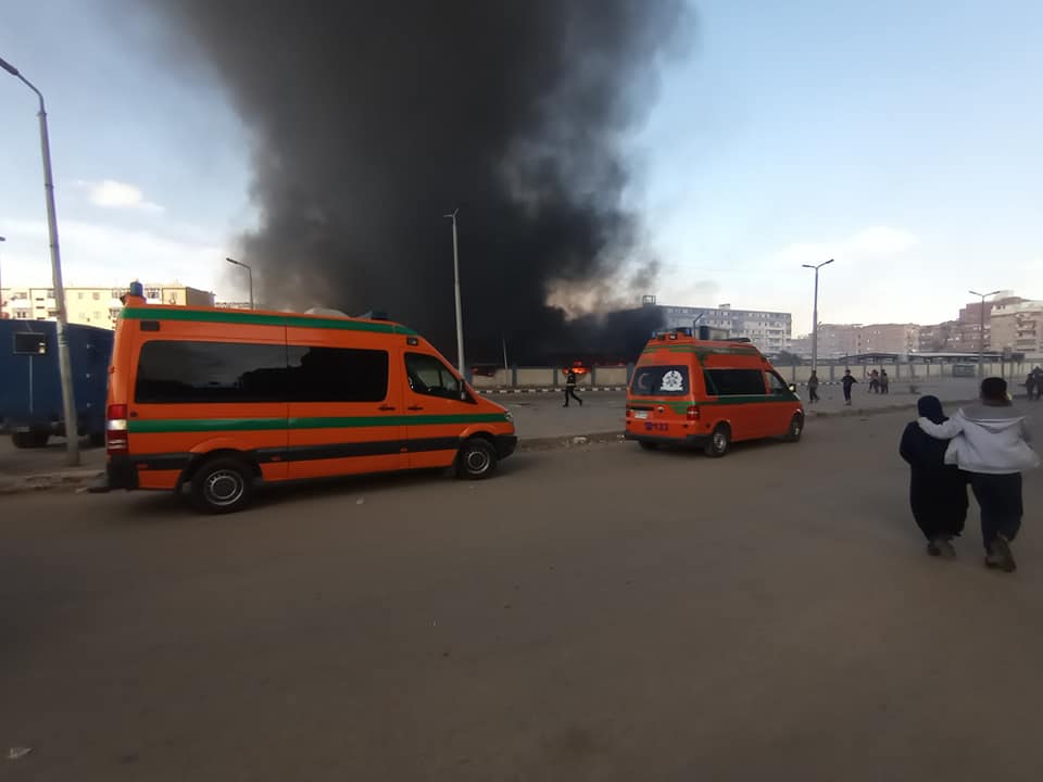 دفع مرفق إسعاف السويس بـ 5 سيارات إسعاف إلى موقع حريق مصنع الملابس بحي الكويت، لتقديم التأمين الطبي للمصابين ونقل الحالات للمستشفى لتلقي العلاج.
