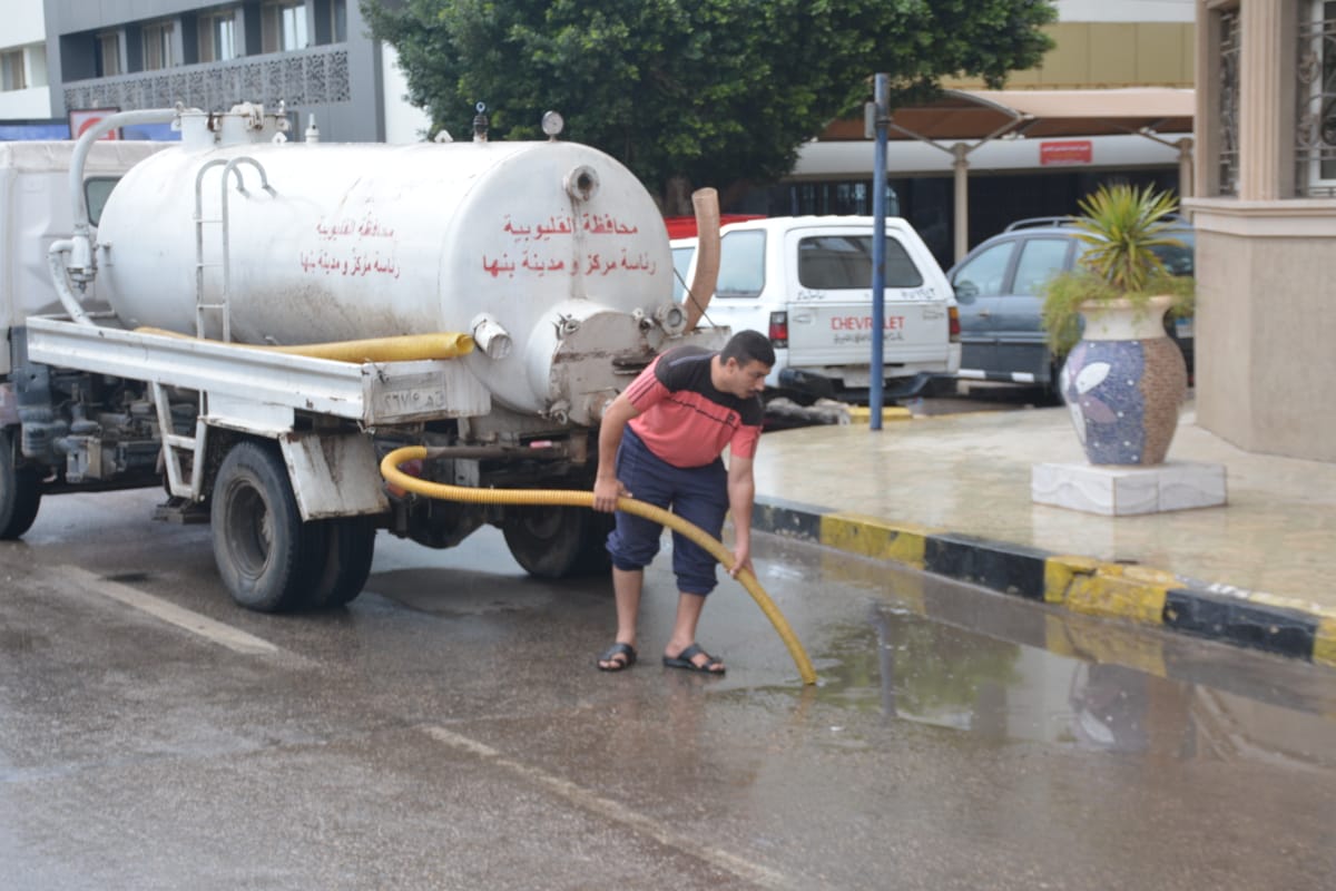 حيث تم الدفع ب 4عربات كسح 20متر و1 نافوري و1 عربة 10متر كسح بشركة مياه الشرب والصرف بالقليوبية كما تم الدفع ب8 عربات كسح من مجلس مدينه بنها، وذلك لشفط تجمعات مياه الأمطار خاصة بالانفاق واماكن تمركز المياه.