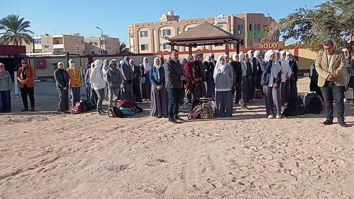 رئيس مدينة طور سيناء يشارك طالبات مدرسة الزهور الثانوية للبنات طابور الصباح