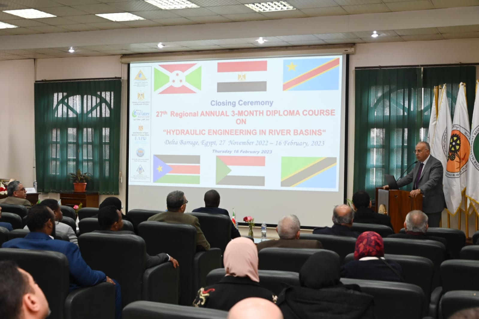 وقد تم عقد البرنامج التدريبى "هندسة هيدروليكا أحواض الأنهار" بمقر مركز التدريب الإقليمى التابع لمعهد بحوث الهيدروليكا بالمركز القومى لبحوث المياه ، خلال الفترة من 27 نوفمبر 2022 الى 16 فبراير 2023 ، وذلك بمشاركة عدد 19 متدرب من دول حوض النيل من دول السودان - جنوب السودان - تنزانيا - بوروندى - الكونغو الديمقرطية مصر .