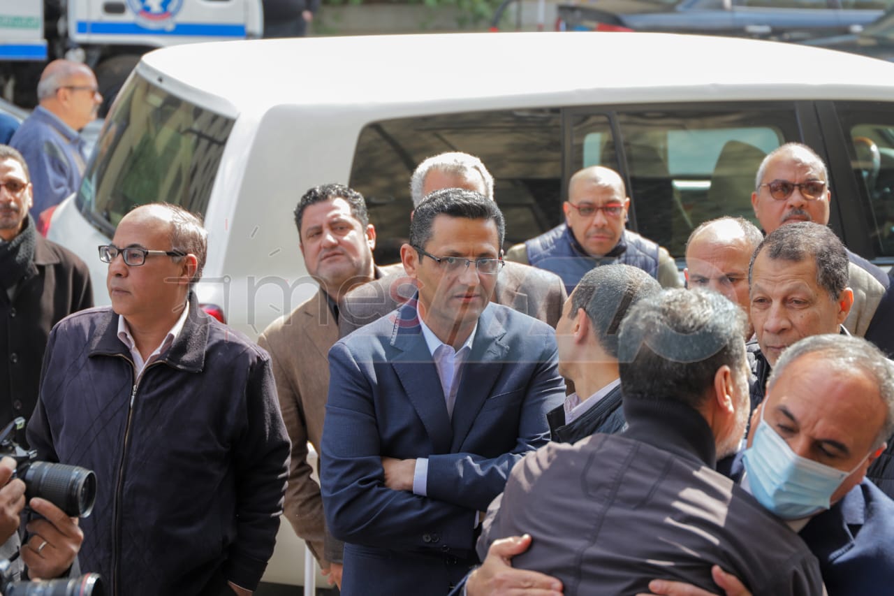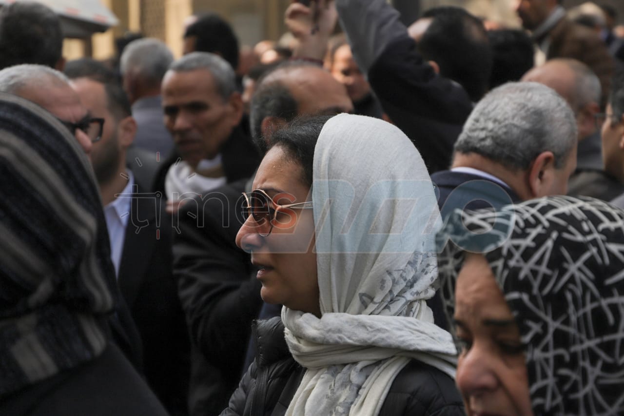 وظهرت السيدات من عائلة الراحل في حالة من الحزن عند وصولهم مسجد عمر مكرم قبيل وصول الجثمان إلى المسجد لأداء صلاة الجنازة، حيث تجمعن حول زوجته لمواساتها وتقديم واجب العزاء في الراحل.