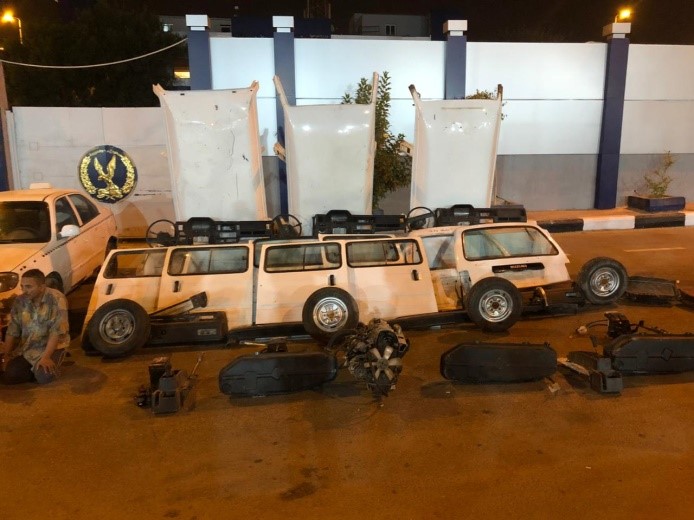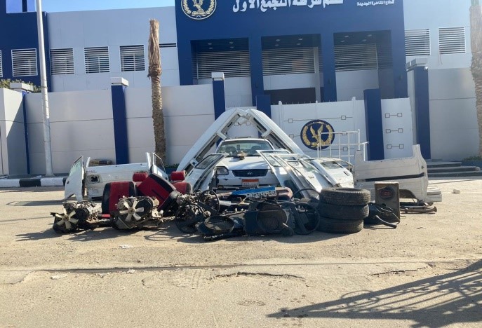 اعترف التشكيل العصابي بأنهم كانوا يسرقون السيارات بقصد تقطيعها إلى أجزاء، والتصرف فيها بالبيع "قطع غيار"، كما أرشد المتهمين عن"صاحب مخزن" له معلومات جنائية سابقة، ومقيم بمحافظة القليوبية أمكن ضبطه كانوا يتعاملون معه في تقطيع وتخزين السيارات المسروقة بمخزنه، وبمواجهته بأقوال المتهمين أيدها، وتم بإرشاده ضبط 3 سيارات مقطعة أجزاء داخل المخزن الذي بملكه، وتم إتخاذ الإجراءات القانونية حيال جميع المتهمين وإحالتهم للنيابة العامة لمباشرة التحقيق.