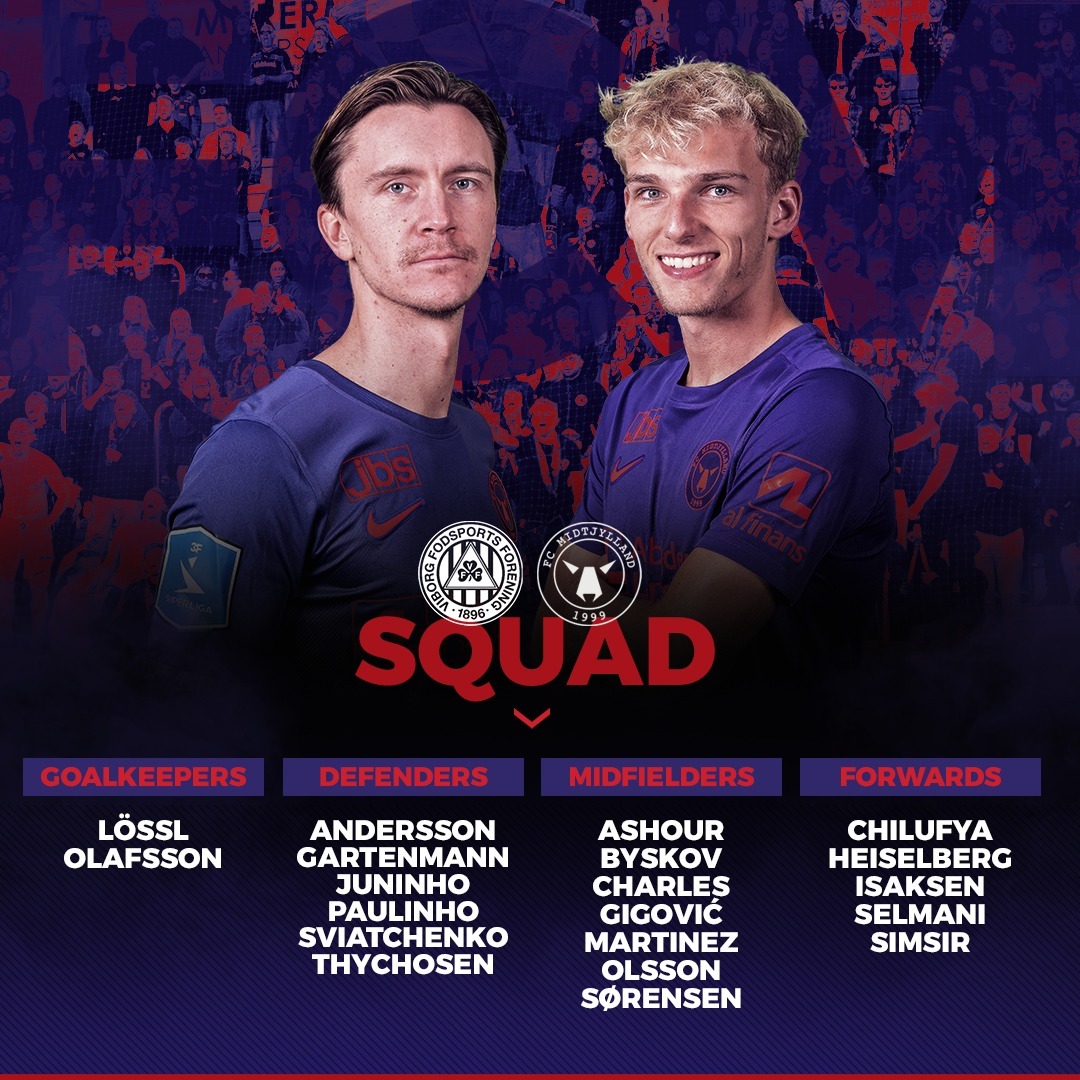 وتنطلق صافرة أحداث اللقاء الذي سيجمع بين ميتيلاند وفيبورج في تمام الساعة الثامنة مساء بتوقيت القاهرة والتاسعة بتوقيت السعودية والعاشرة بتوقيت أبو ظبي، وجاءت قائمة الفريق كالتالي..