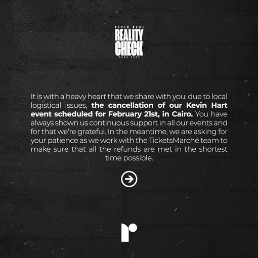 وسبق وأعلن نجم الكوميديا كيفين هارت عن تقديمه عرض ستاند أب كوميدي في مصر لأول مرة، ضمن جولة Reality Check.