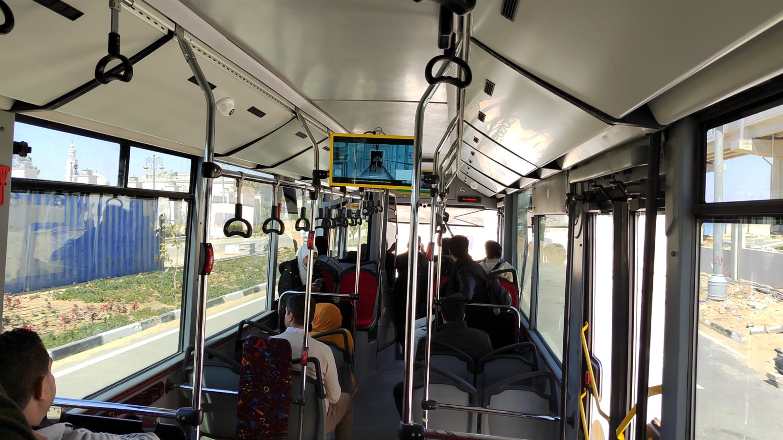 وبدأت وزارة النقل التشغيل التجريبي لمنظومة النقل الذكي بإجمالي 20 أتوبيسا تم تشغيلها بعدد مسارين من محطة مدينة الفنون والثقافة إلى الحي الحكومي من خلال 15 محطة وسطية.