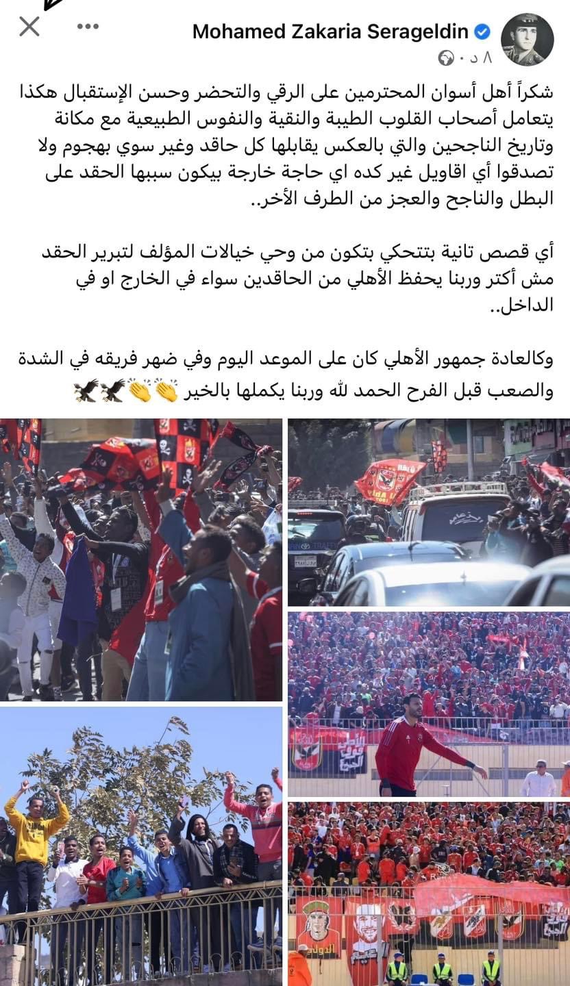 محمد سراج الدين يشكر جماهير الأهلى على الاستقبال فى أسوان
