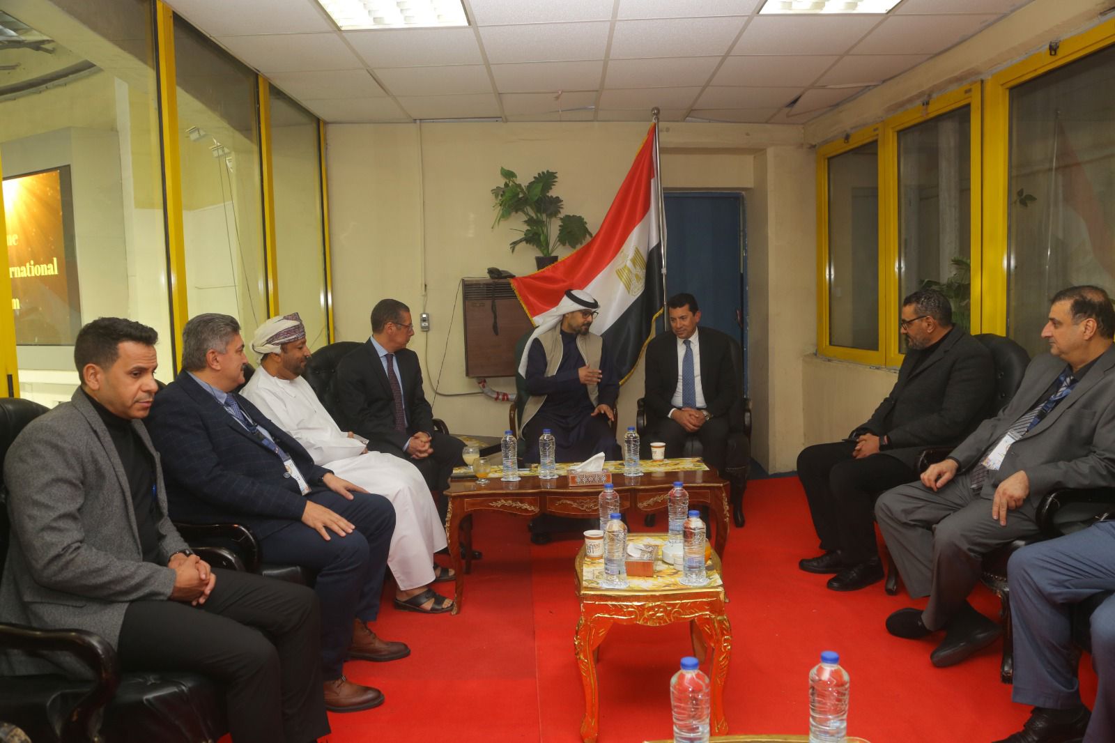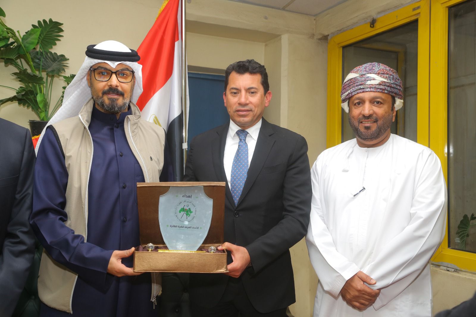 عبدالهادى الشبيب يسلم درع الاتحاد العربى للطائرة لوزير الشباب والرياضة