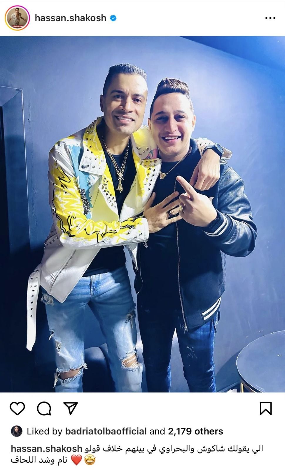 ونشر شاكوش صورة له برفقه رضا البحراوي، وعلق عليها: “اللي يقولك شاكوش والبحراوي في بينهم خلاف قولو نام وشد اللحاف”.