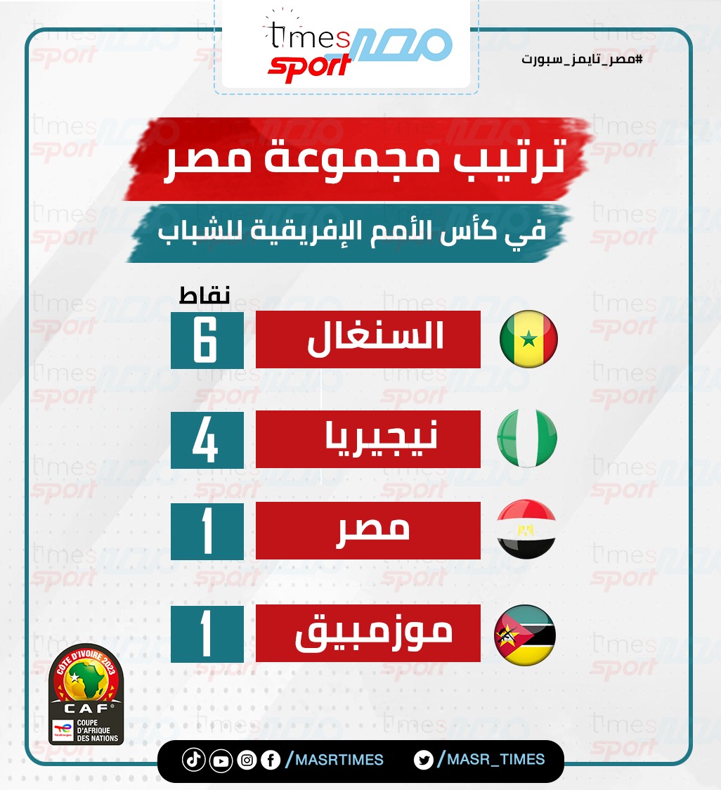ترتيب مجموعة مصر في أمم أفريقيا بعد الهزيمة أمام نيجيريا