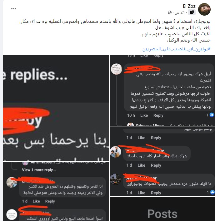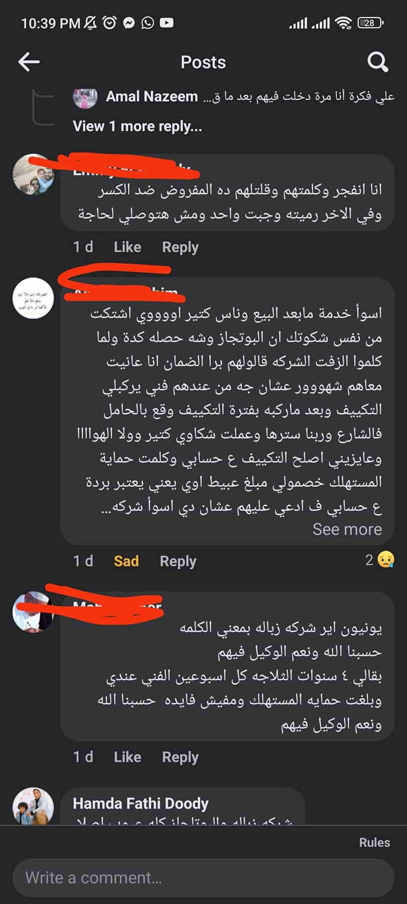 اشتكى عدد من المواطنين من منتجات شركة يونيون آير وسوء الجودة بها وعدم اهتمام الشركة بصيانة منتجاتها.