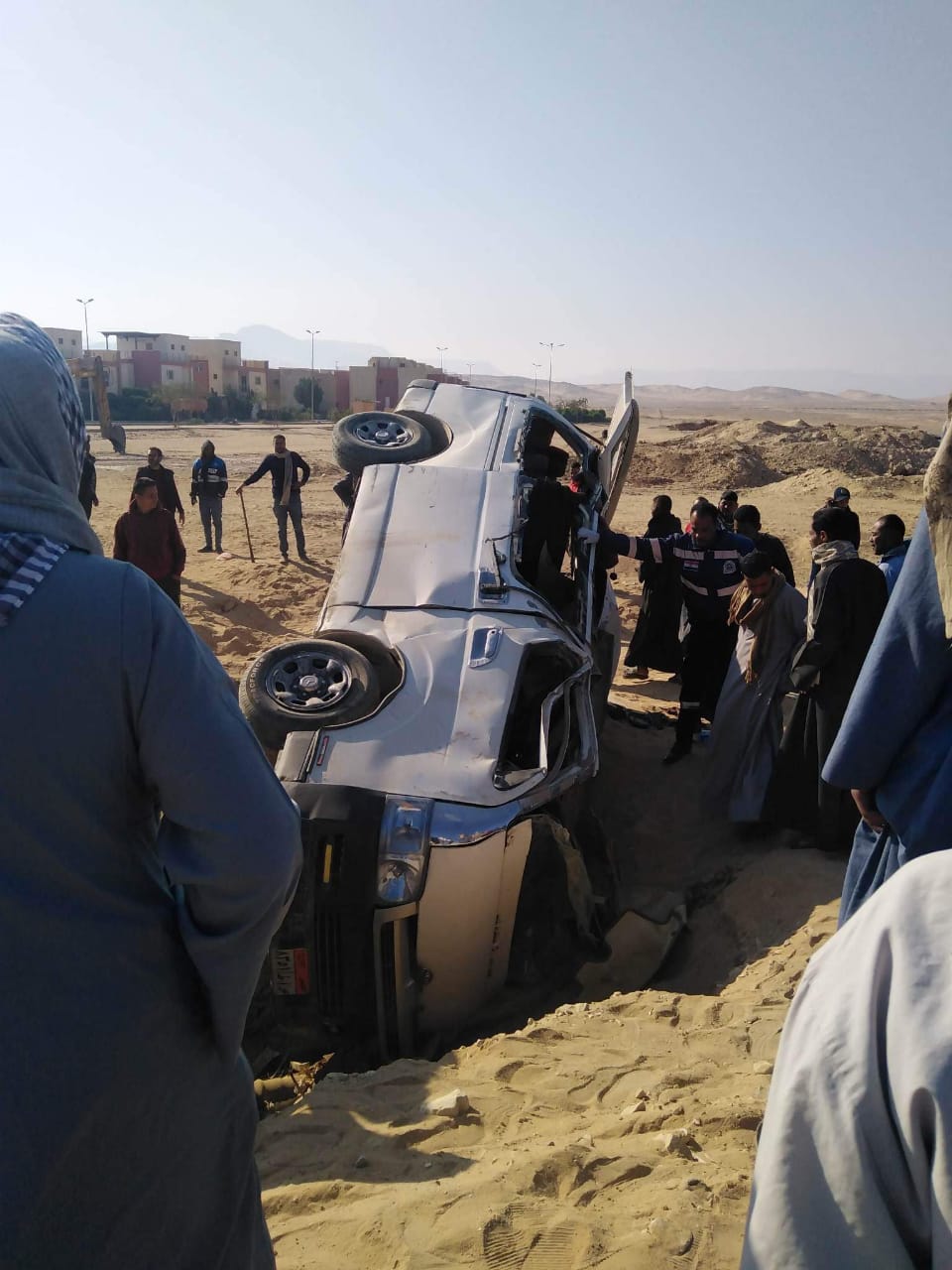 إصابة 13 شخصًا إثر انقلاب سيارة ميكروباص على صحراوي قنا