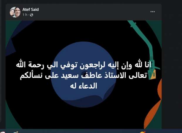 وأعلن الحساب الرسمي للفنان عاطف سعيد على موقع التواصل الإجتماعي “فيسبوك” أن صلاة الجنازة ستكون عقب صلاة العصر دون الإشارة إلى عنوان المسجد المقرر أن يشيع منه الجثمان.
