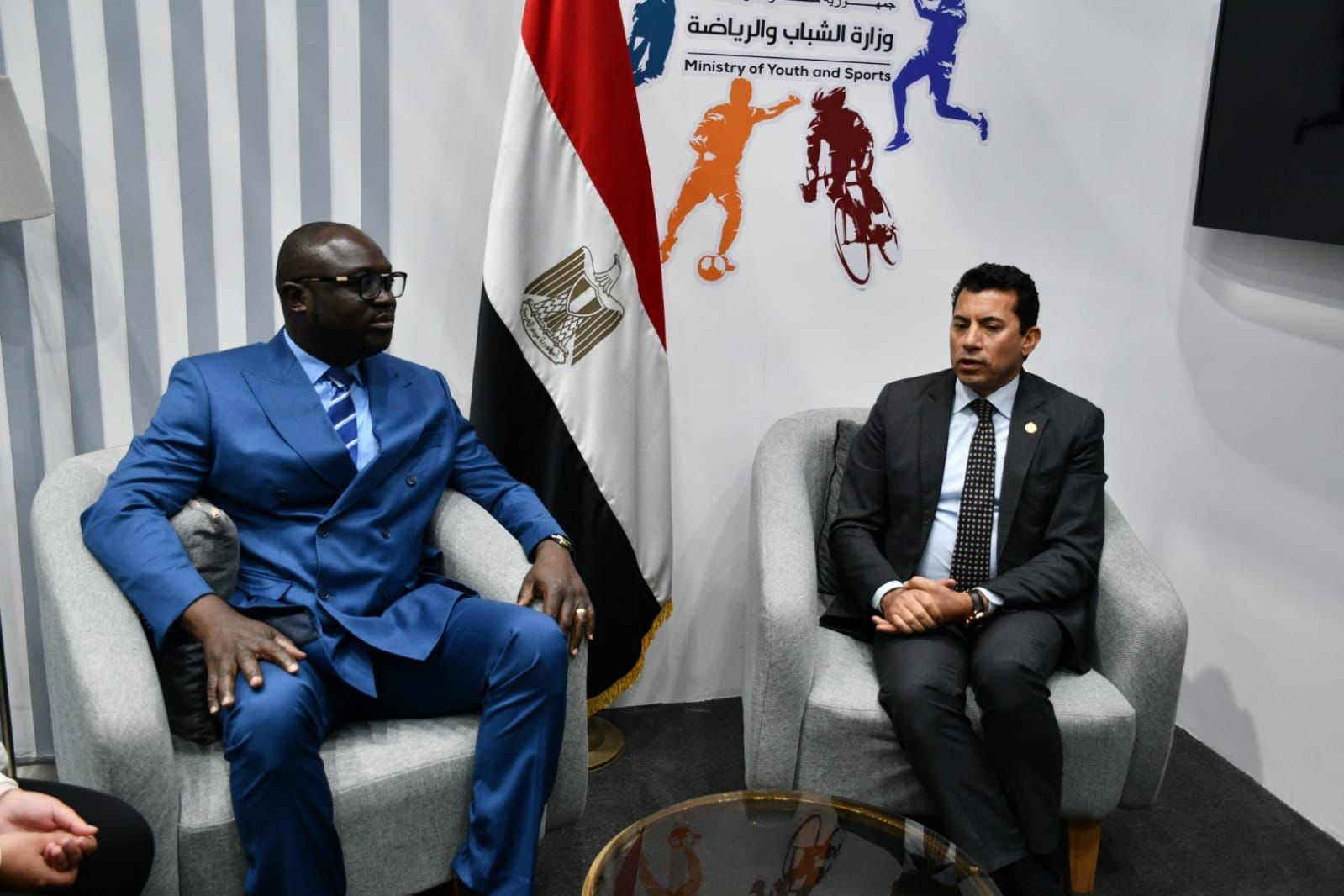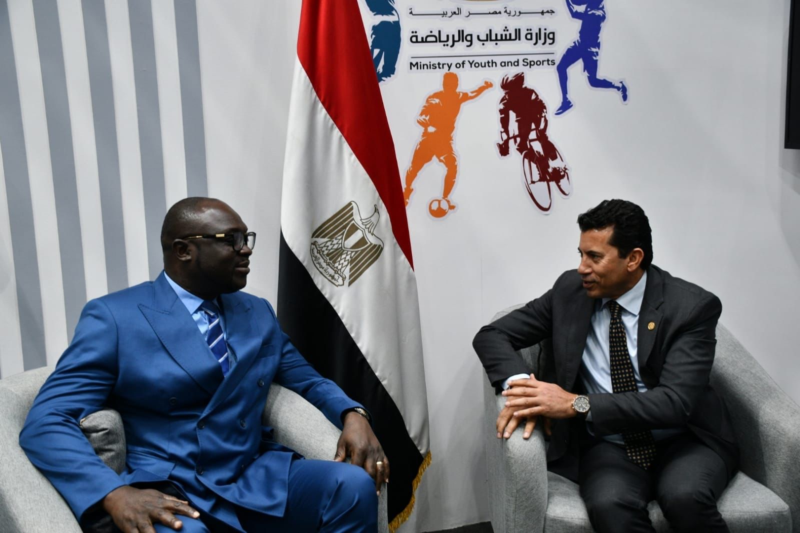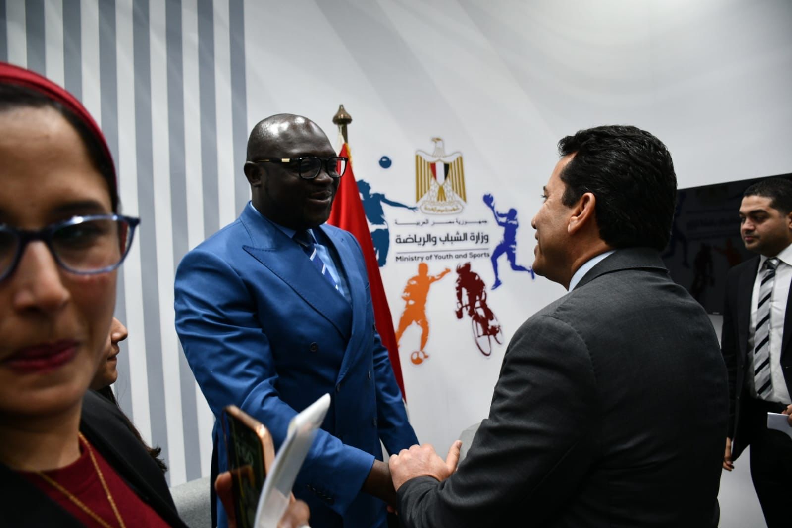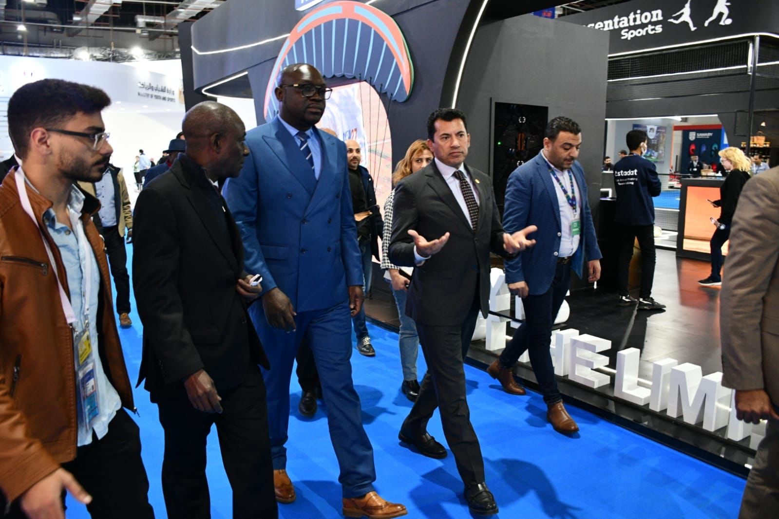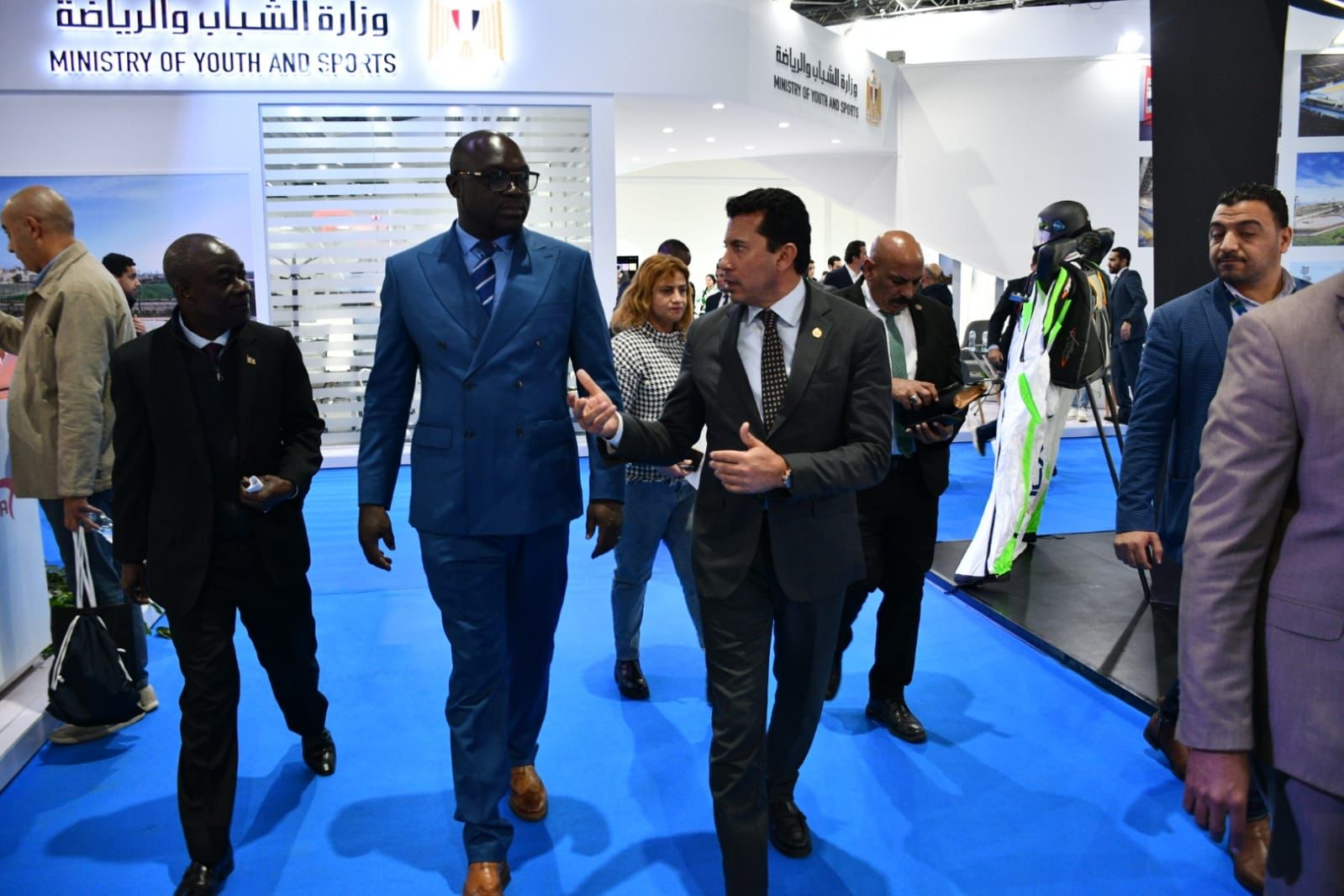 وزير الرياضة يستقبل نظيره بأفريقيا الوسطي ويصطحبه بجولة تفقدية داخل "سبورتس إكسبو"