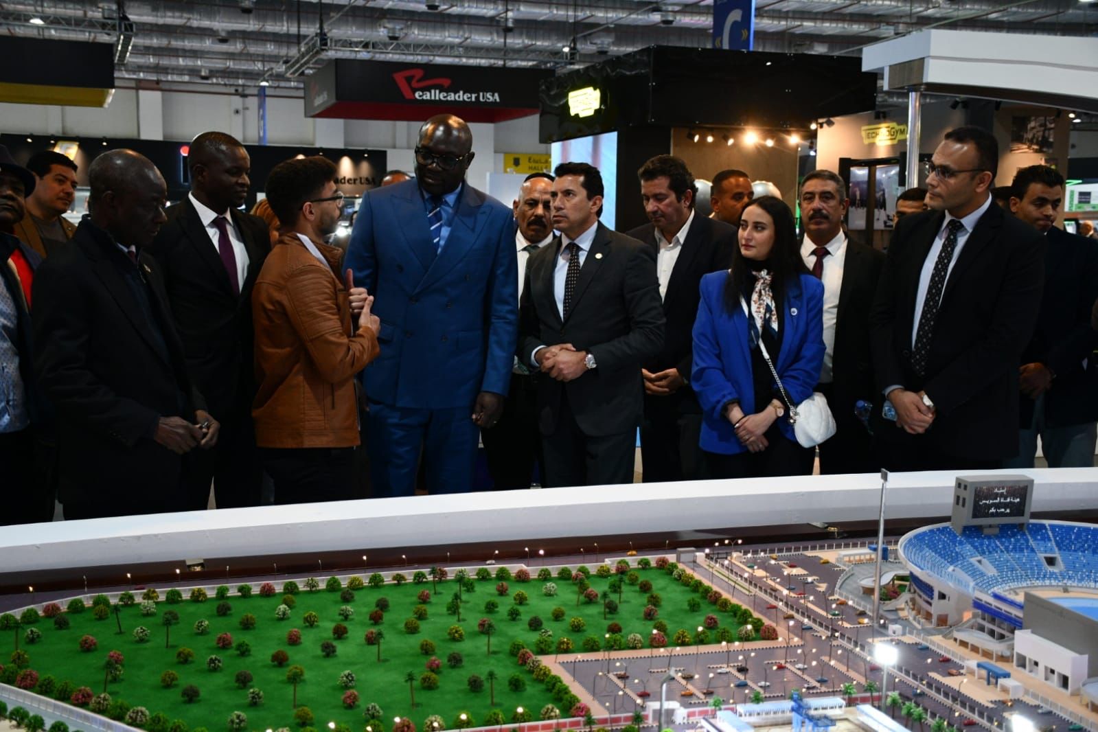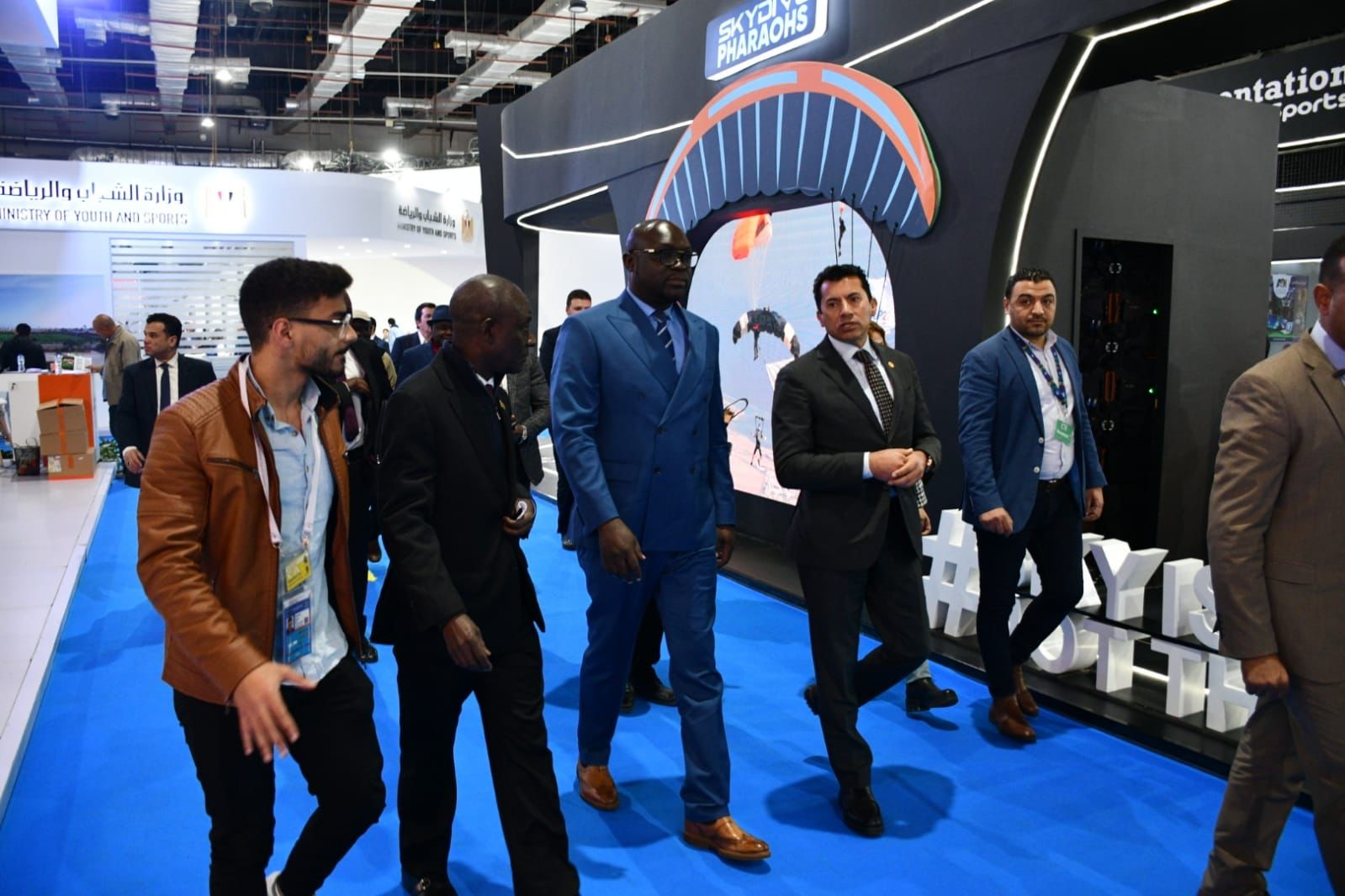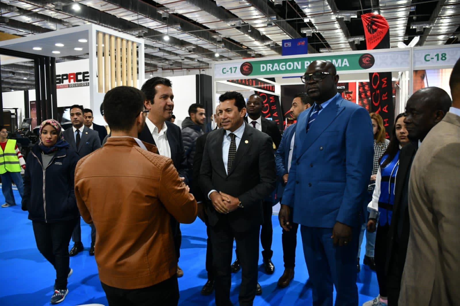 واصطحب وزير الشباب والرياضة، وزير الشباب والرياضة بافريقيا الوسطي ، في جولة لتفقد المعرض ومختلف أجنحته منها جناح هيئة قناة السويس ، وشركة المدن، وشركة تذكرتى، وجناح مصنع النجيل الصناعى، والهيئة العربية للتصنيع بجانب مشاهدة الأنشطة والفعاليات الرياضية المقامة ضمن فعاليات المعرض، كما حضر الوزيران جزءاً من الجلسة الحوارية المقامة ضمن فعاليات المؤتمر تخت عنوان "الاستثمار الرياضى".