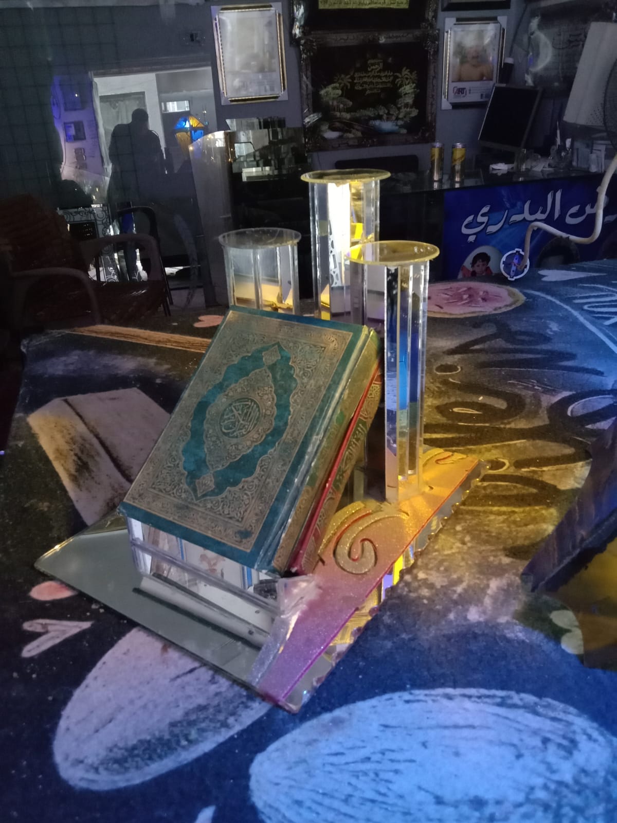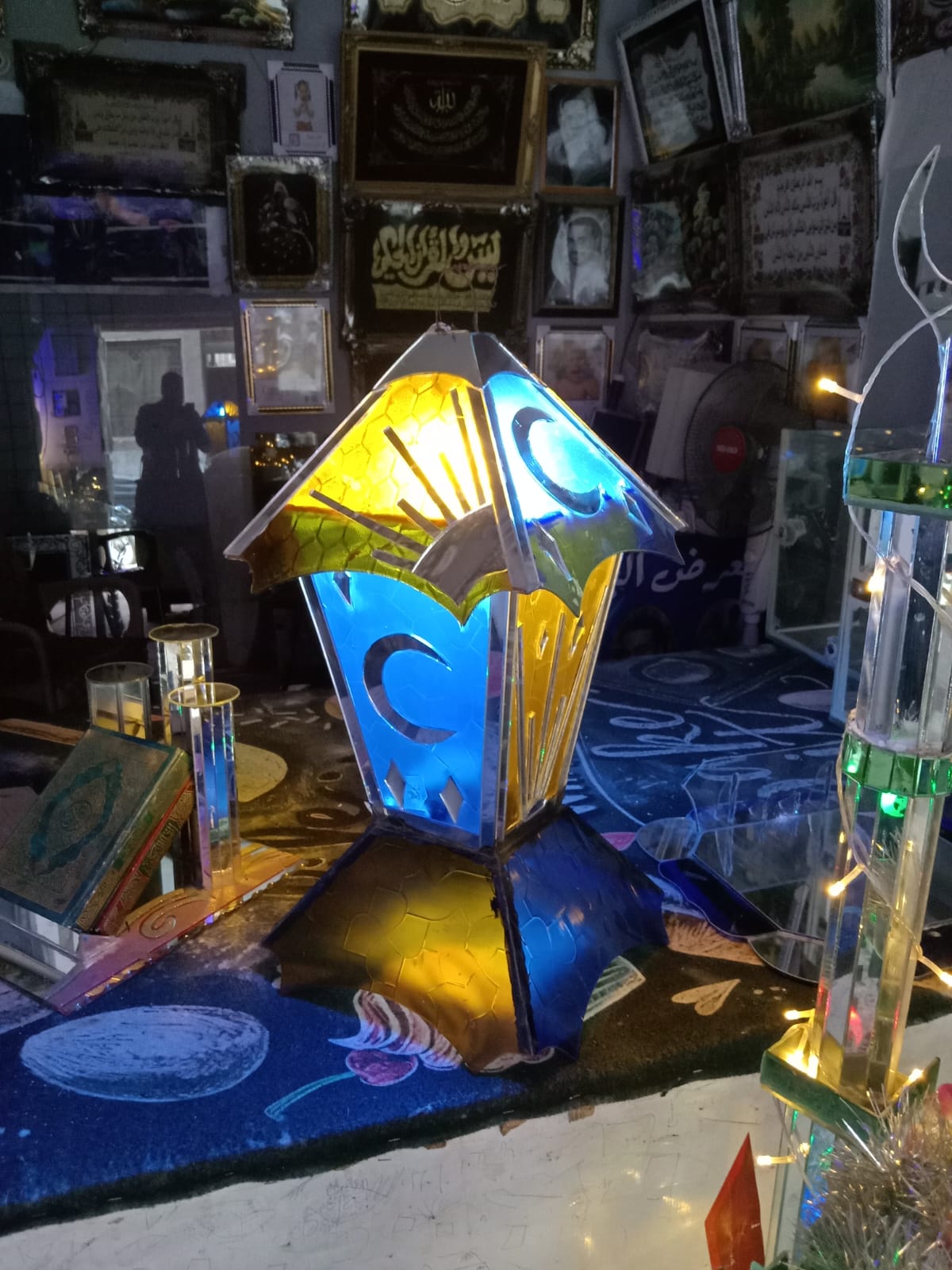 يواصل البدرى حديثه: "يستغرق المسجد من 10 إلى 15 يوم فى التنفيذ، هناك مادة السيليكون اللاصقة تستغرق وقت حتى الجفاف التام، ولا يمكن عمل كل شيء فى وقت واحد، وأقوم بالعمل بمفردى، حيث لا يوجد من ينفذ كما أتصور التصميم، وتتراوح تكلفة المسجد من 1000 إلى 2000 جنيه، وهذا نظراً الخامات، أما الفانوس فهو يستغرق أسبوع فى إتمام عمله، ويبلغ سعره 350 جنيها وعليه إقبال كثيف من المواطنين، وهو أكثر شهرة في هذا الشهر الفضيل، ويكتمل المشهد بحامل المصحف المصنوع من نفس المادة الخام".