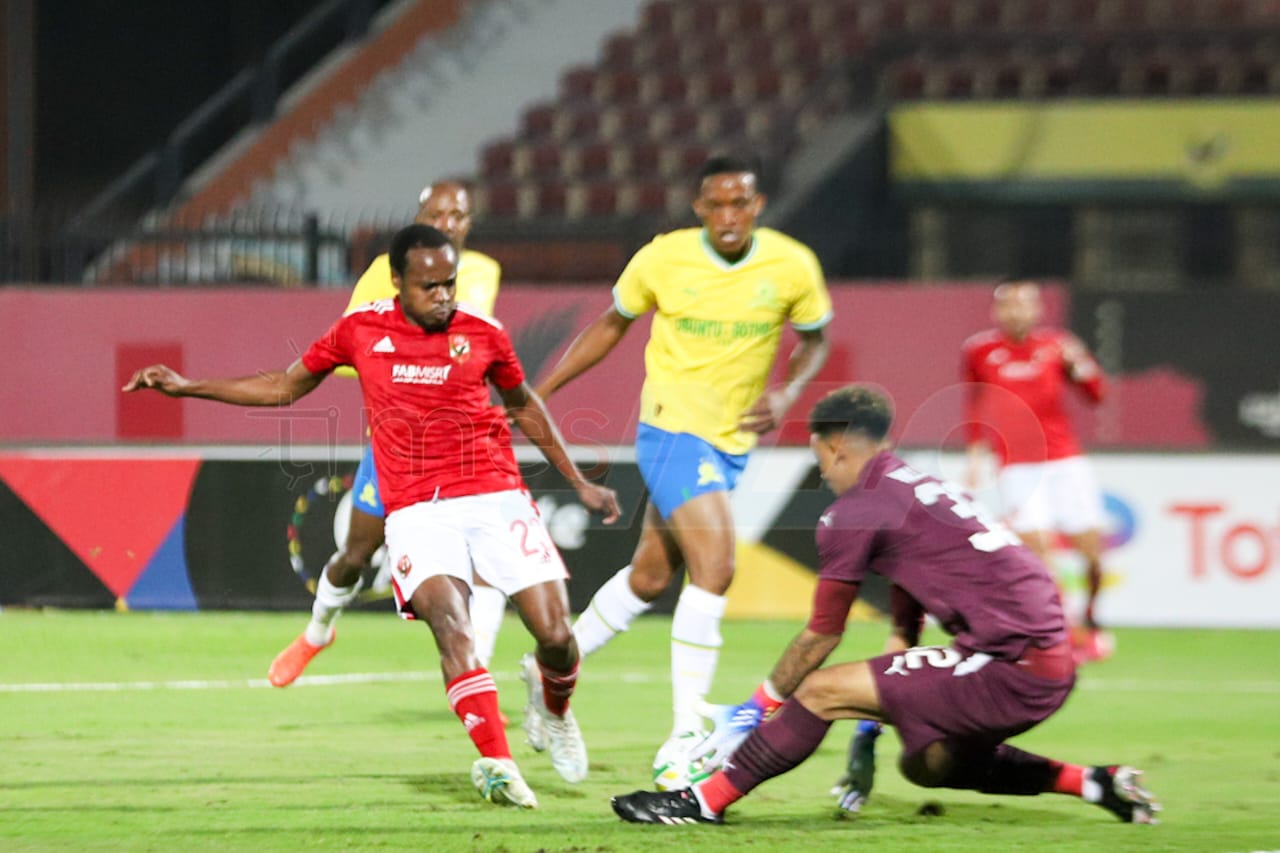 وتأخر فريق الأهلي بهدف نظيف في الشوط الأول أمام صنداونز الجنوب إفريقي، سجله بيتر شالوليلي الهدف الأول لـ صنداونز في مرمي الأهلي بالدقيقة (34) من زمن الشوط الأول.
