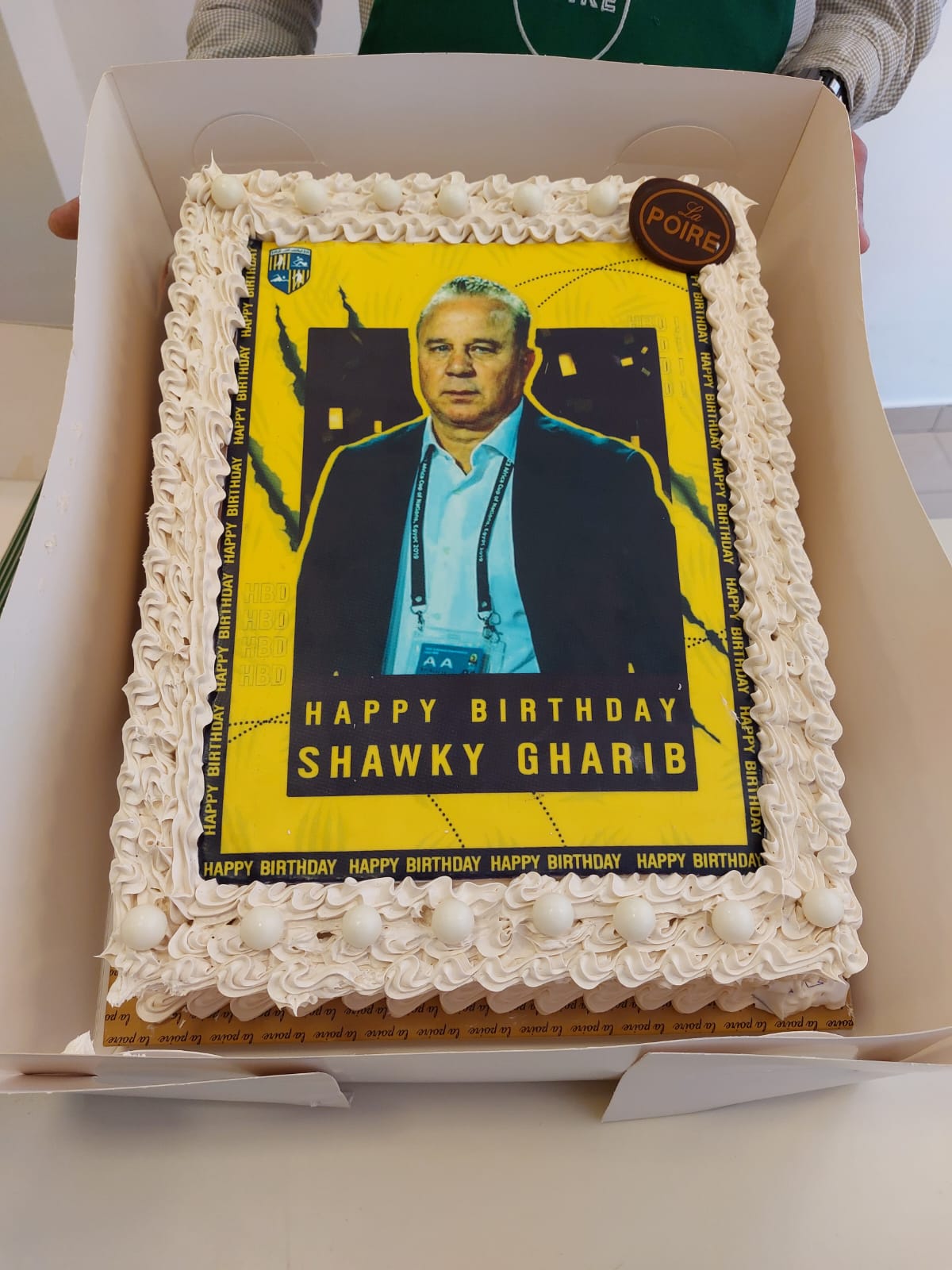 المقاولون العرب يحتفل بعيد ميلاد شوقى غريب قبل مران اليوم