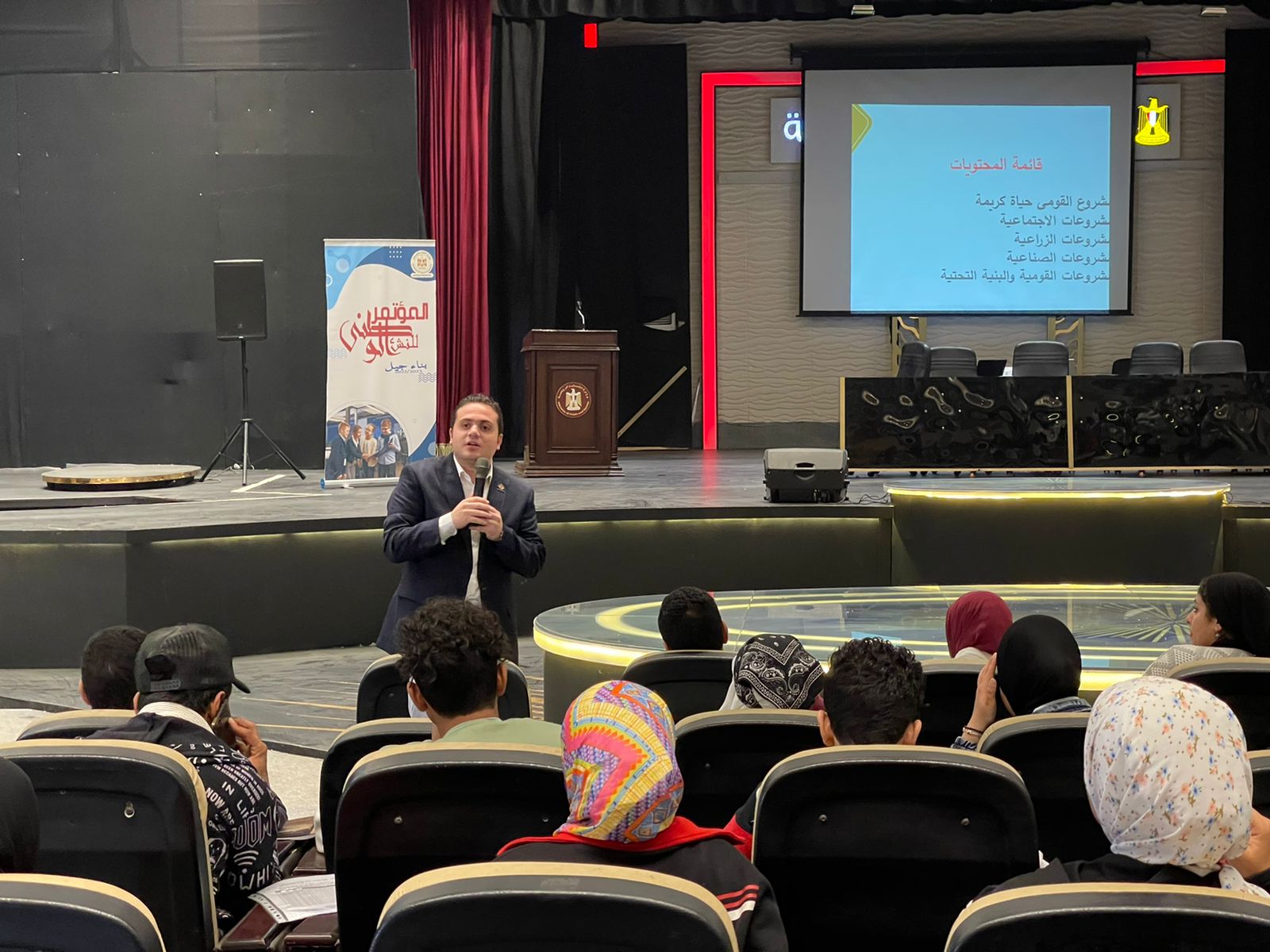 وجاءت الجلسة الثانية حول إنجازات الدولة المصرية، حيث شارك فيها النشء من مختلف المحافظات بعرض إنجازات محافظاتهم وانجازات مبادرة "حياة كريمة " داخل كل محافظة، وأدار الجلسة الدكتور علي هلال من تنسيقية شباب الأحزاب.
