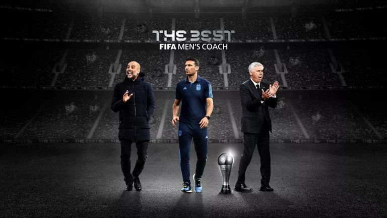 يتنافس على الفوز بجائزة أفضل مدرب في العالم لعام 2022، 3 مدربين، ليخلف الألماني توماس توخيل هو من فاز بالجائزة عن العام الماضي 2021 بعد قيادة تشيلسي لدوري أبطال أوروبا، وهم الإيطالي كارلو أنشيلوتي مدرب ريال مدريد الفائز بدوري أبطال اوروبا العام الماضي، ويتواجد معه ليونيل سكالوني بطل كأس العالم مع الأرجنتين، وبيب جوارديولا مدرب مانشستر سيتي بطل الدوري الإنجليزي الممتاز.