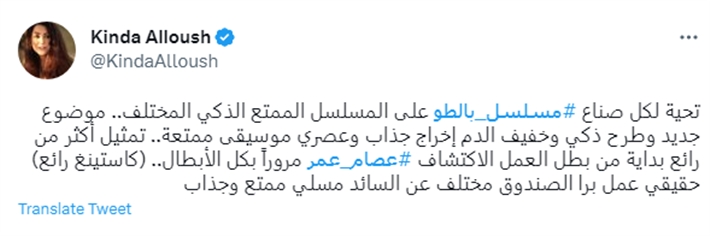 وتابعت كندة علوش: تمثيل أكثر من رائع بداية من بطل العمل الاكتشاف عصام عمر مرورا بكل الأبطال.. (كاستينج رائع) حقيقي عمل برا الصندوق مختلف عن السائد مسلي ممتع وجذاب.