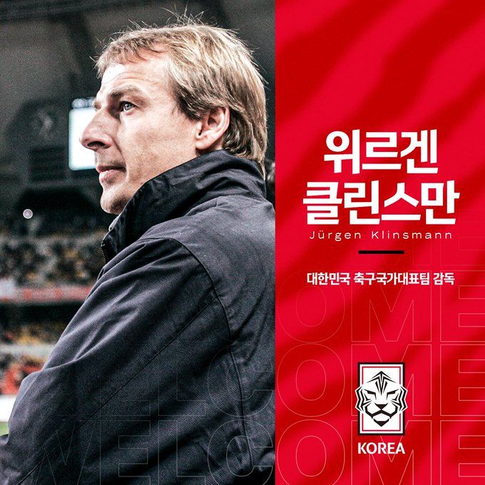 أعلن الاتحاد الكوري الجنوبي لكرة القدم عن تولي المدرب الألماني يورجن كلينسمان، مديراً فنياً لمنتخب كوريا الجنوبية ، خلفاً للبرتغالي باولو بينتو.