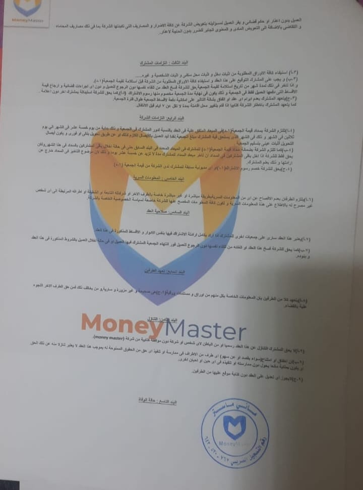 وتضيف المهندسة جهاد " لـ"مصر تايمز"، أنها مريضة سرطان ودخلت الجمعية في شركة ماني ماستر بهدف توفير مستحقات علاجها على جلسات الكيماوي، وسددت للشركة حتى الآن مبلغ 15 ألف جنيه وكان موعد استحقاقها لأموال الجمعية يناير الماضي ولكنها لم تستلم جنيهًا واحدًا حتى كتابة هذه السطور، كما أن شقيقها ووالدتها ضحايا للشركة، مشيرة إلى أنه لم يتم تحرير تعاقد لوالدتها بالرغم من اشتراكها في الجمعية منذ ثلاثة أشهر ولكن حين جاء المندوب لتحصيل الأموال منها أكد لها أنه ليس لديه عقود في ذلك الوقت.