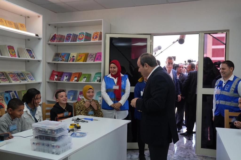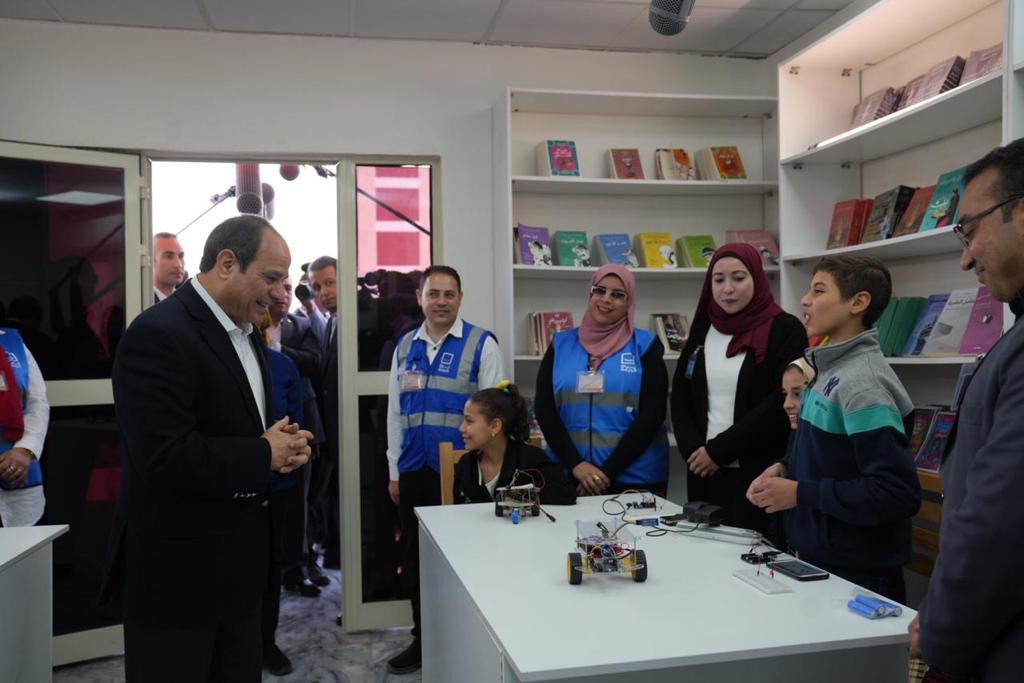 الرئيس السيسى يتفقد مكتبة "حياة كريمة" فى ملوى (صور)