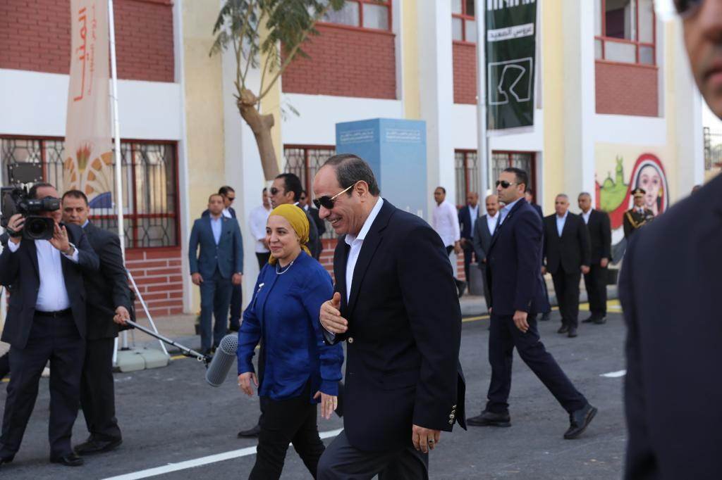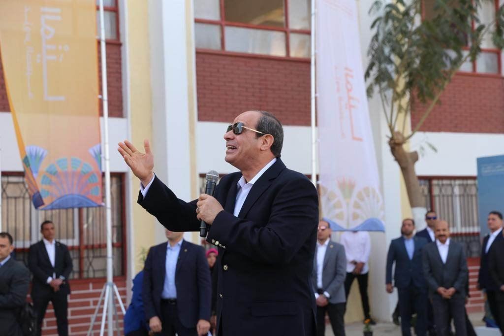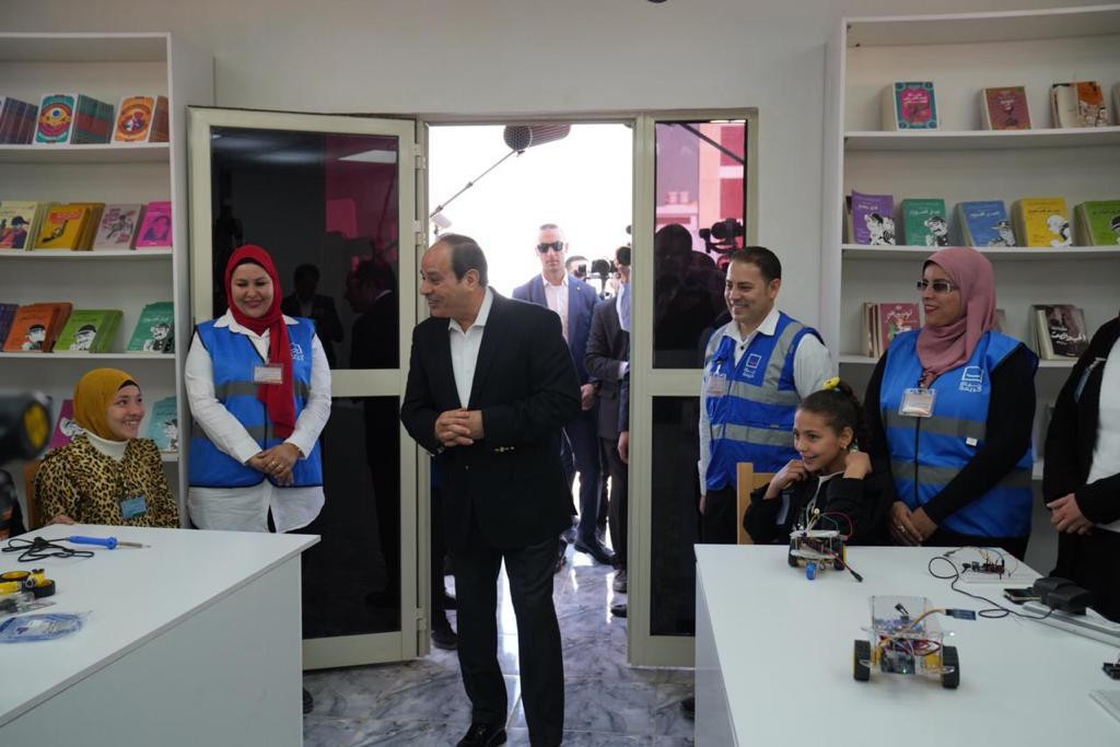 تفقد الرئيس عبدالفتاح السيسى، مكتبة "حياة كريمة"، داخل مركز الشباب بقرية المعصرة، بمركز ملوى فى محافظة المنيا.