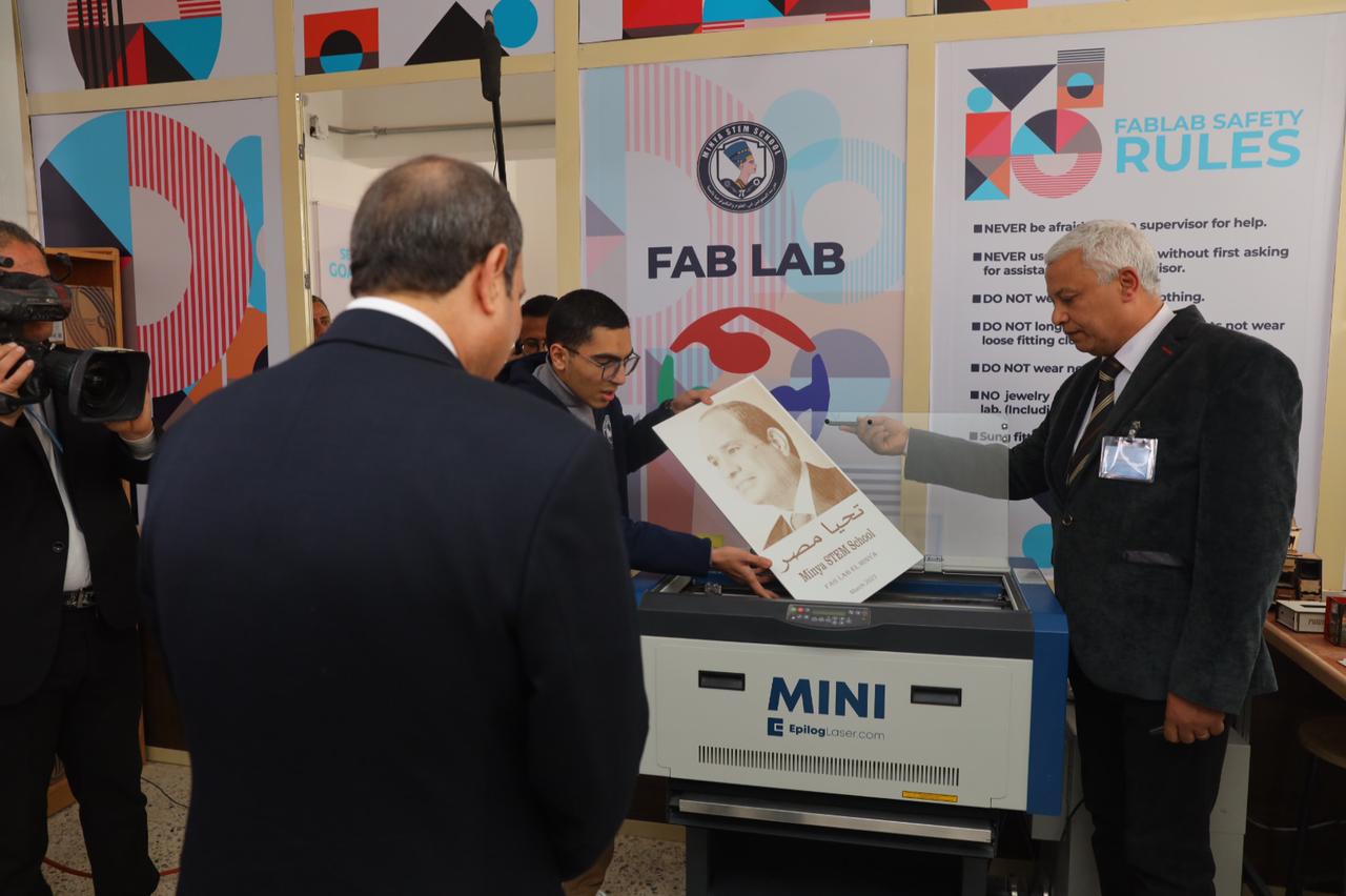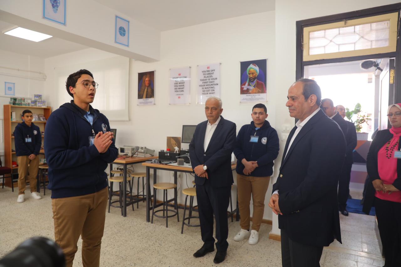 كما تفقد الرئيس السيسي مدرسة المتفوقين بمدينة المنيا الجديدة وشاهد عدداً من العروض الفنية بالمسرح المدرسي.