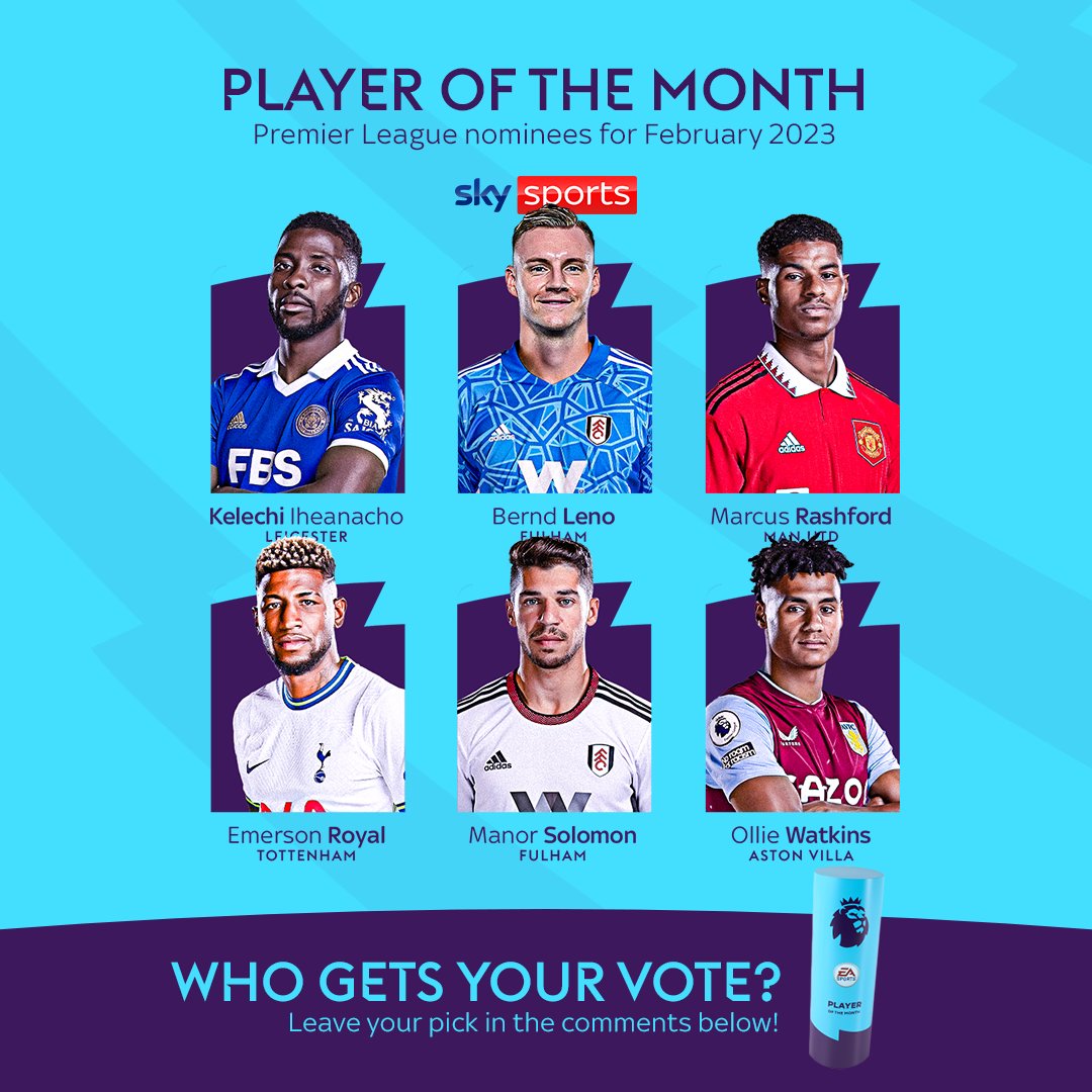 وضمت قائمة المرشحين للفوز بجائزة لاعب شهر فبراير في الدوري الإنجليزي الممتاز كلا من: