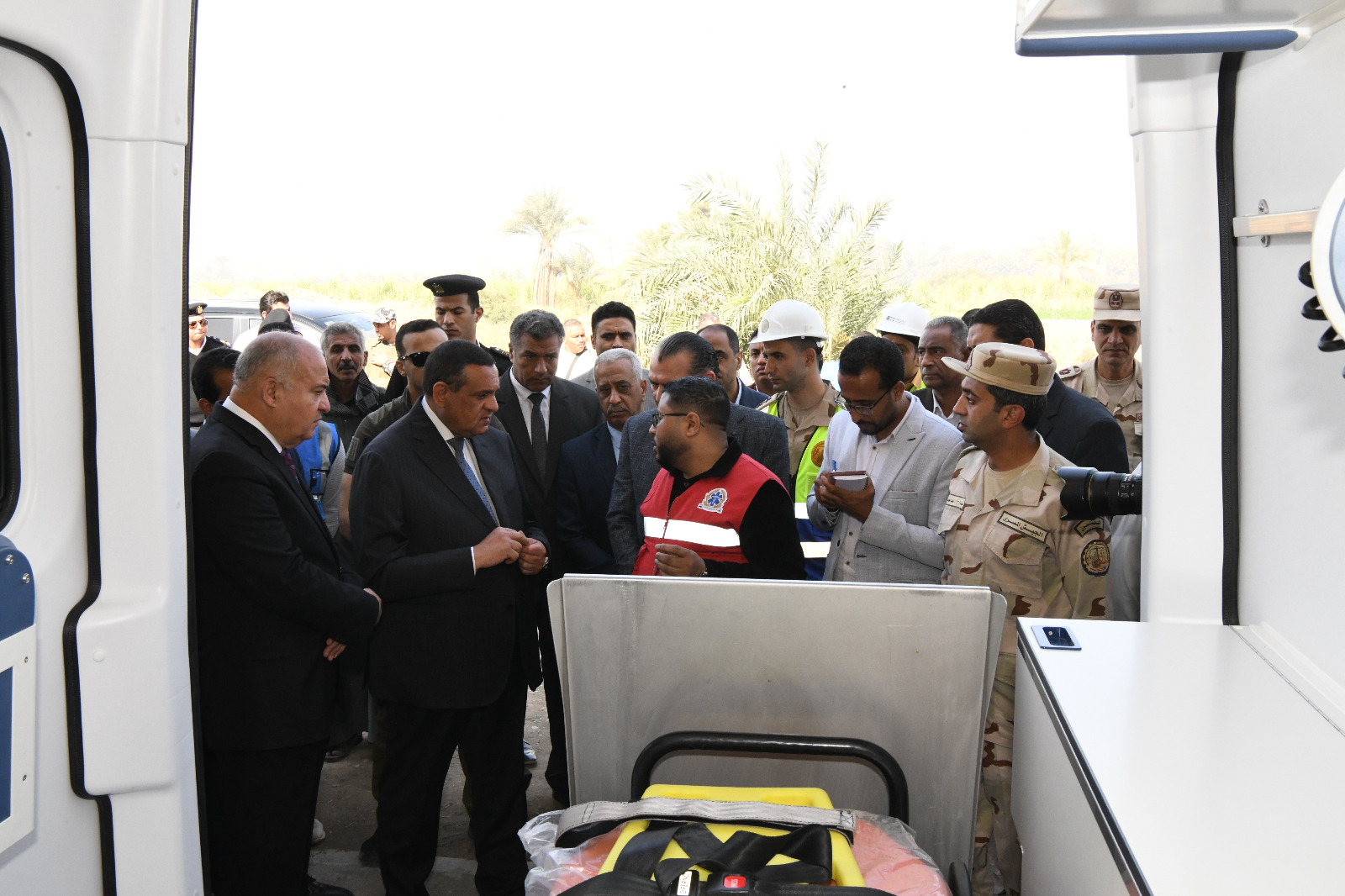 كما تفقد اللواء هشام آمنة واللواء أشرف الداودي نقطة إسعاف قرية خزام والتي تتكون من مبني مكون من طابق واحد علي مساحة 280 م2 وتحتوي علي "سكن للطاقم الطبي، غرفة مولد، غرفة تحكم ، 2 جراج لسيارات الإسعاف ) حيث تم الانتهاء من تنفيذها بنسبة 100 %، كما تفقدا إنشاء وحدة التضامن الاجتماعي بالعيايشا والتي تقع علي مساحة 755 م2 ومكونة من طابقين وتحتوي علي " فصل حضانة، غرفة عزل، مكتب تأهيل ،ورش تدريب، غرفة الوحدة الاجتماعية، غرف ادارية، الارشيف ) حيث تم الانتهاء من تنفيذها بنسبة 100 %، بالإضافة الي تفقد الوحدة الصحية بقرية المفرجية والتي تتكون من 3 طوابق علي مساحة 1300 م2 وتحتوي علي) عيادات طبية، معمل، غرف تعقيم ، الصيدلية، المخازن، مكاتب ادارية، المخازن، سكن للطاقم الطبي) بنسبة تنفيذ وصلت إلى ٩٥ ٪.