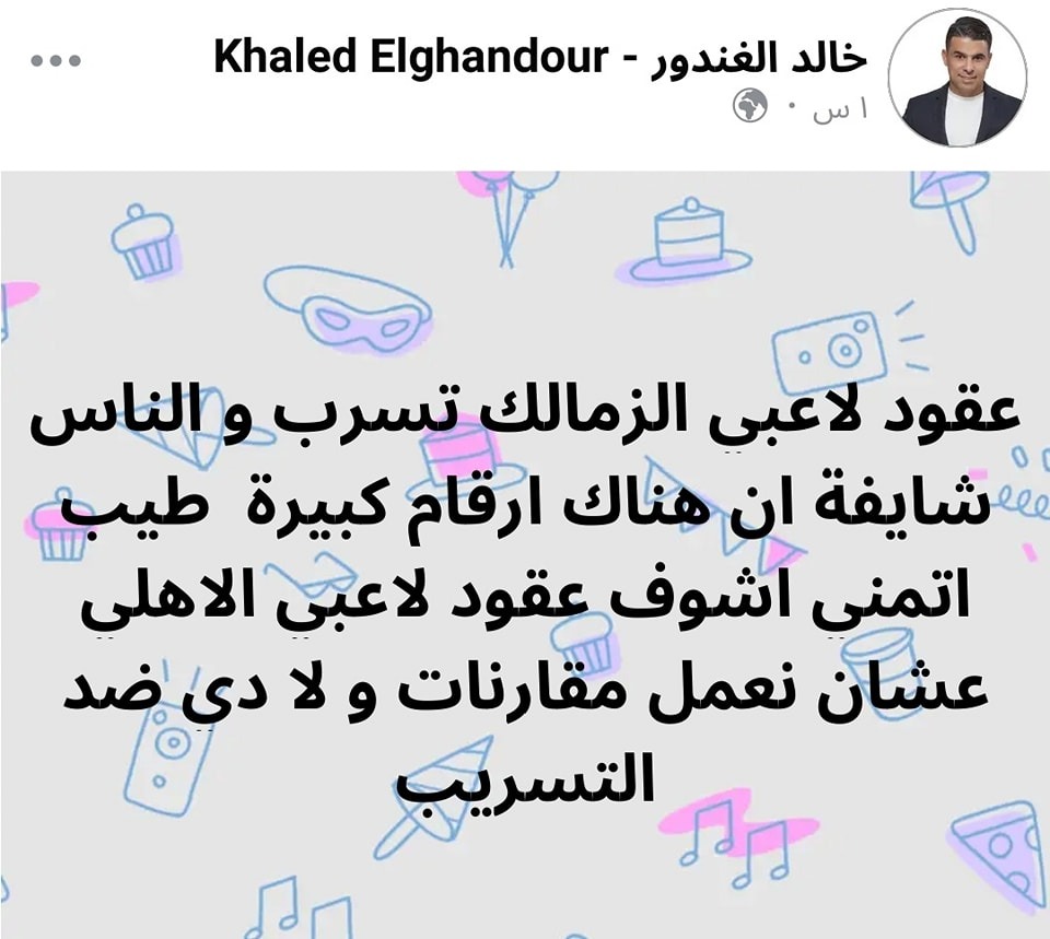 استنكر خالد الغندور لاعب نادي الزمالك السابق، تسريب عقود لاعبي فريقه، في الآونة الأخيرة، قائلاً،" ليه عقود لاعيبة الزمالك بس هي اللي بتتسرب؟ أنا عايز أعرف أرقام لاعيبة الأهلي وبيراميدز اللي هما أعلى أندية بيدفعوا فلوس".