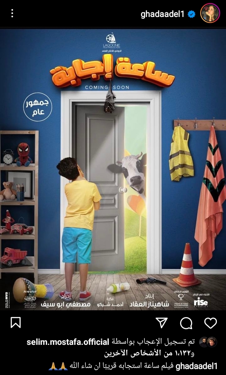 طرحت الفنانة غادة عادل، بوستر فيلمها الجديد "ساعة إجابة"، وذلك عبر حسابها الشخصى على موقع تبادل الصور والفيديوهات الشهير "إنستجرام"، وعلقت غادة عادل، على البوستر قائلة: "فيلم ساعة إستجابة قريبا إن شاء الله".