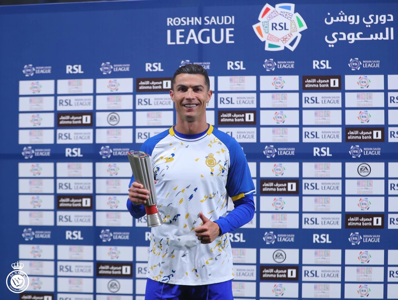 كريستيانو رونالدو يحتفل بجائزة "لاعب الشهر" في الدوري السعودي