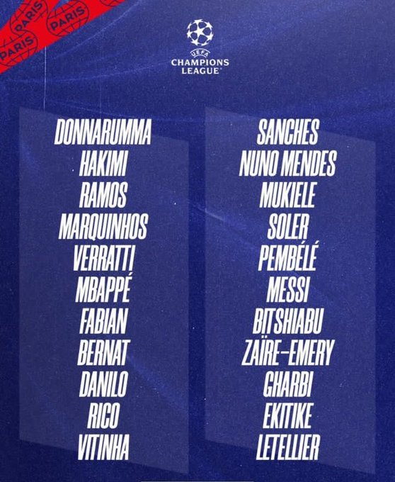 قائمة باريس سان جيرمان لمواجهة بايرن ميونخ