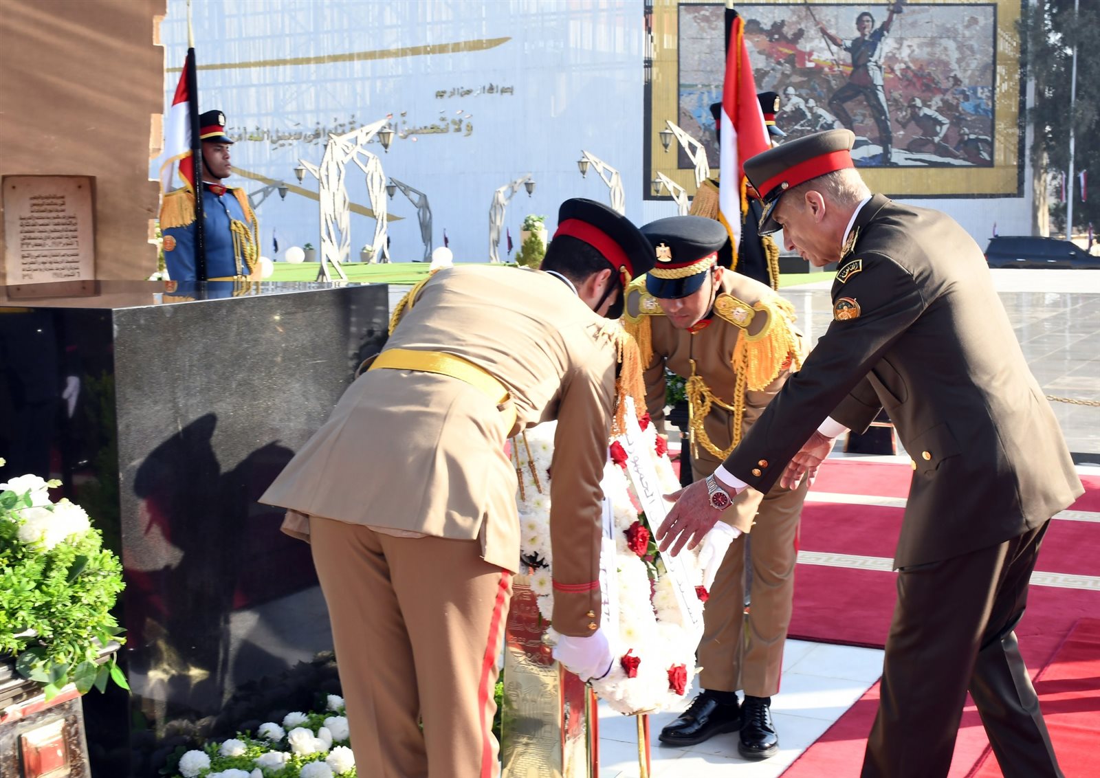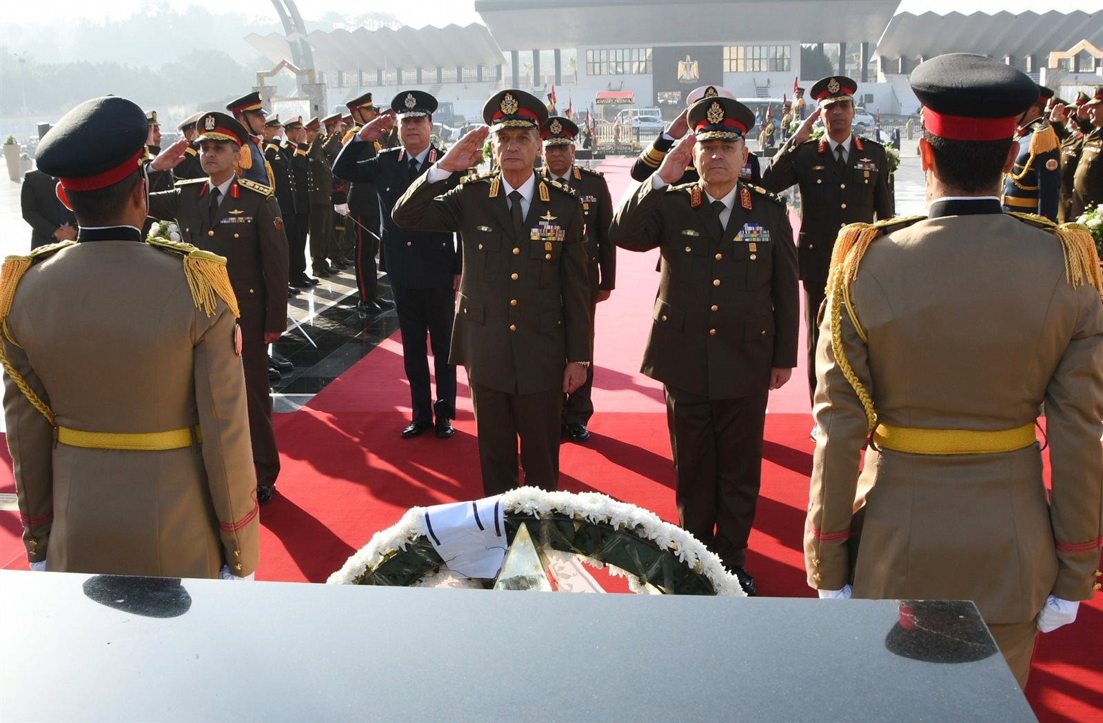 وقام القائد العام للقوات المسلحة يرافقه الفريق أسامة عسكر رئيس أركان حرب القوات المسلحة وقادة الأفرع الرئيسية بوضع باقة من الزهور على النصب التذكارى للجندى المجهول ، كما عزفت الموسيقات العسكرية سلام الشهيد ، ثم توجه لقراءة الفاتحة على قبر الزعيم الراحل محمد أنور السادات وفى نهاية مراسم الإحتفال قام بتحية عدد من كبار قادة القوات المسلحة .