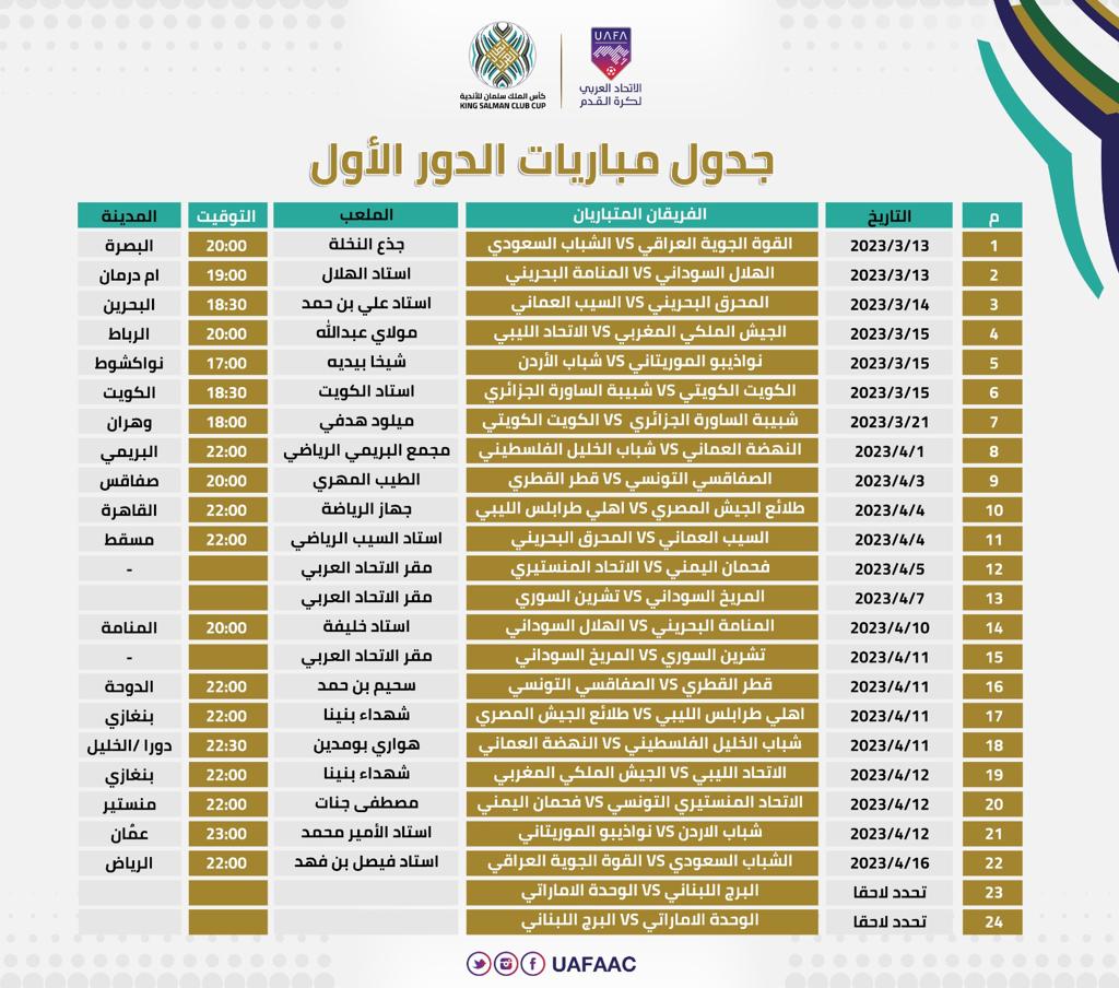 تعرف على مواعيد مباريات الدور الأول من البطولة العربية