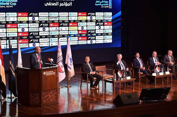 وزير الرياضة يشهد المؤتمر الصحفي لبطولة كأس العالم للخماسي الحديث للرجال والسيدات