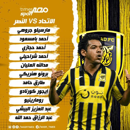 حجازي وطارق حامد أساسيان في تشكيل الاتحاد ضد النصر بدوري روشن السعودي