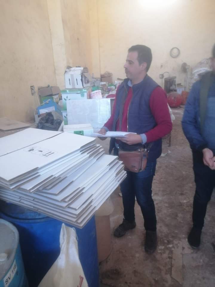 وشكلت اليوم حملة تموينية برئاسة عبد السلام حامد المفتش الاول بالاداره وعضوية احمد شوغي مأموري الضبط القضائي واسفرت الحمله عن ضبط مصنع بدون ترخيص وبدون سجل صناعي يقوم بتعبئة الكبريت الزراعي وضبط 150طن كبريت كما تم ضبط مصنع اعلاف لوجود 2500كيلو جرام مركزات اعلاف مجهولة المصدر وضبط مصنع اعلاف لوجود 50شيكاره مواد خام مجهولة المصدر 2500كيلو.