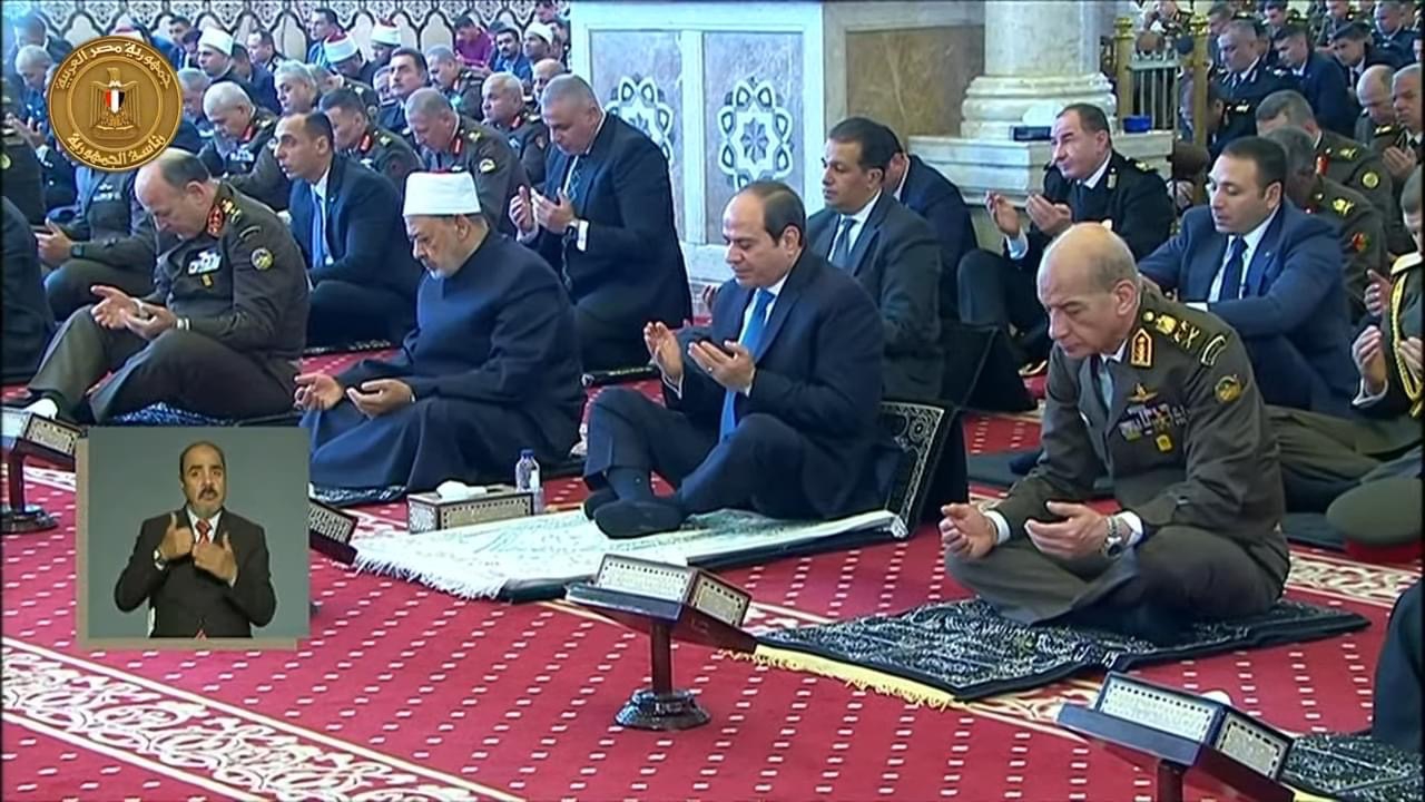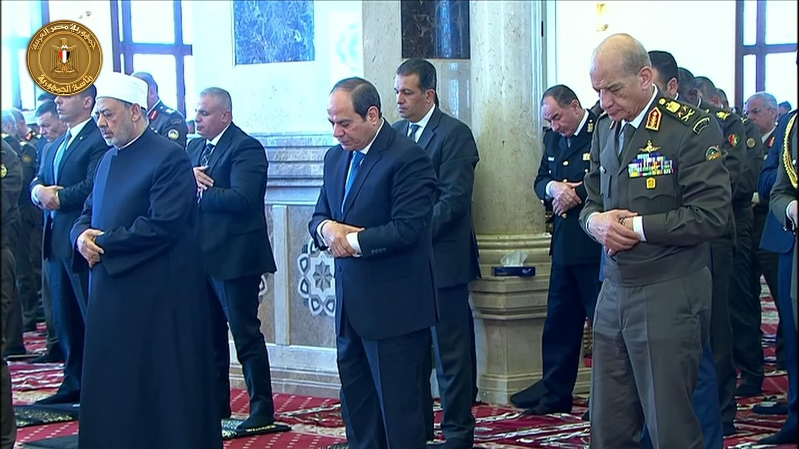 وقد أدى الصلاة مع الرئيس السيسي، كلا من الفريق أول محمد زكي القائد العام للقوات المسلحة وزير الدفاع والإنتاج الحربي، وفضيلة الإمام الأكبر شيخ الأزهر الشريف أحمد الطيب، الدكتور شوقي علام مفتي الجمهورية، رئيس الأمانة العامة لدور وهيئات الإفتاء في العالم، ووزير الأوقاف الدكتور محمد مختار جمعة، واللواء خالد عبدالعال، محافظ القاهرة، وعدد من قادة الأفرع الرئيسية وضباط صف وجنود القوات المسلحة.