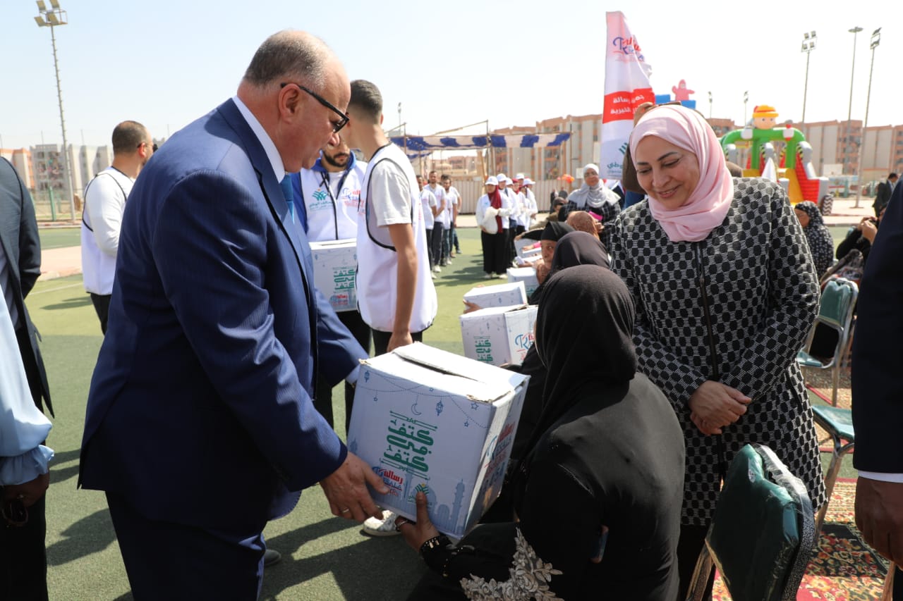 وتم خلال الحفل الذى شهده اللواء خالد عبد العال محافظ القاهرة توزيع 2000 كرتونة غذائية، 2 طن لحوم ، و 2000 قطعة ملابس .